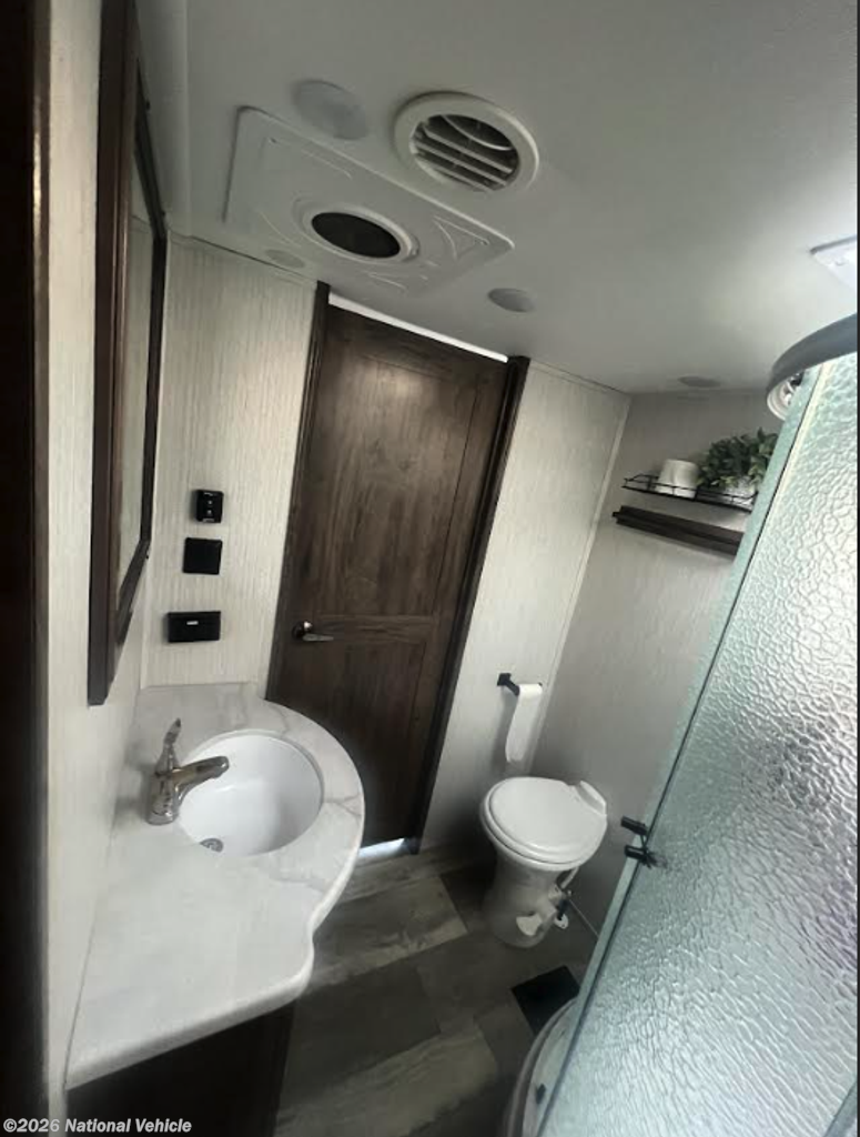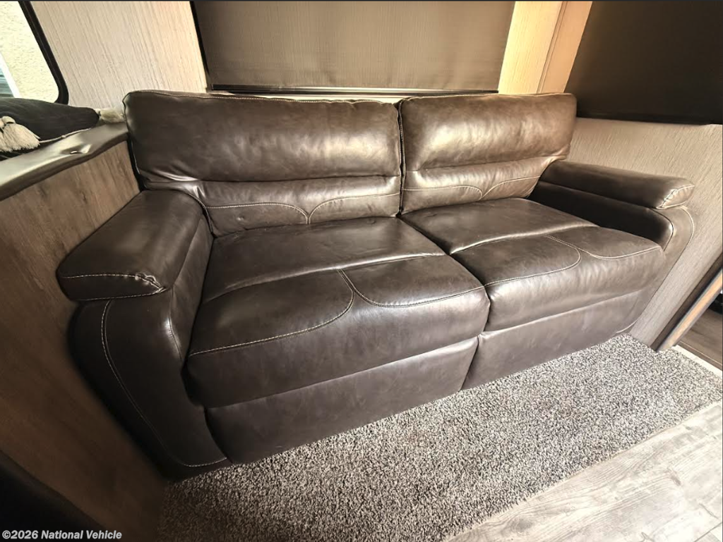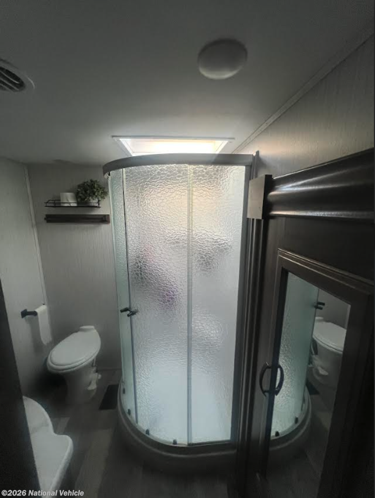 The full bathroom is generously sized and conveniently located, offering residential comfort whether you?re camping for a weekend or staying longer. Inside, the open layout creates a bright, welcoming atmosphere with ample seating, storage, and room to relax after a day outdoors.