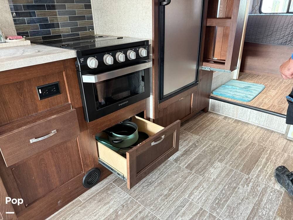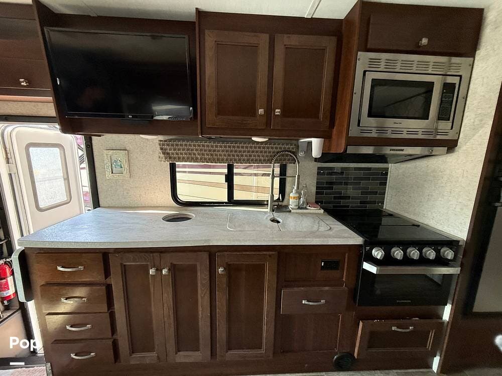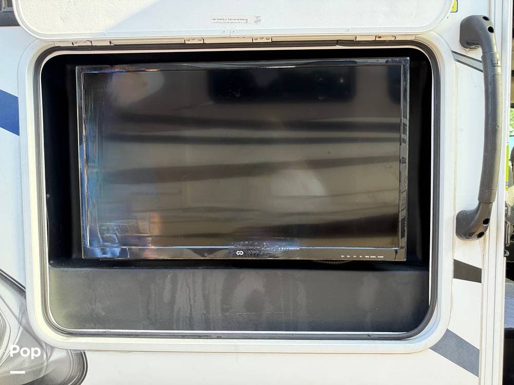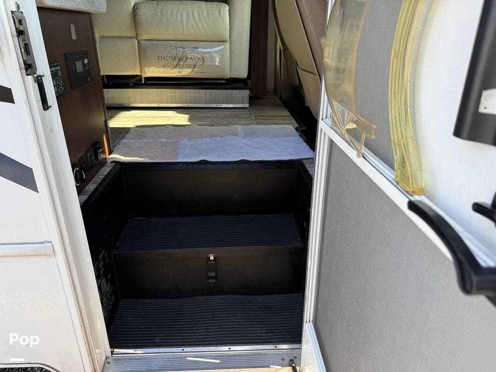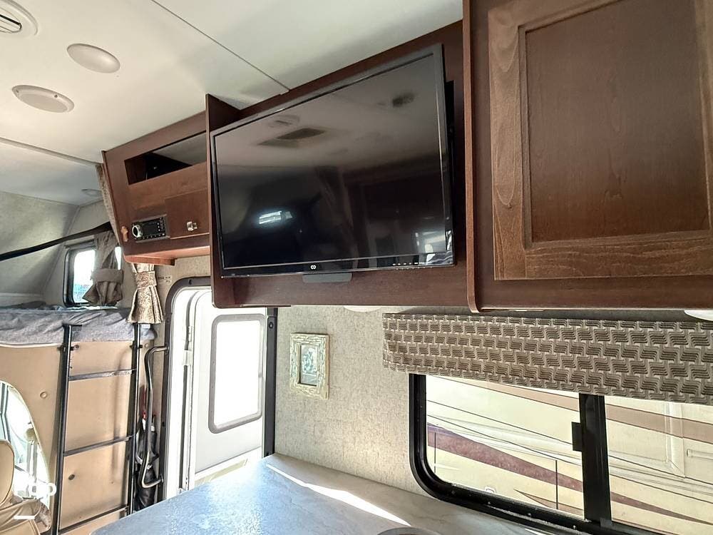 Two slides for extra room, two newer stadium seats and two interior TVs, and one outside for tailgating or just lounging under the like-new awning.
