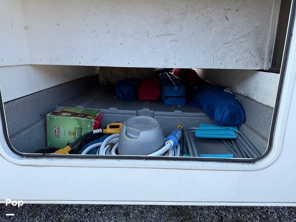 Cab over bunk sleeping area. A U-shaped dinette with new upholstery provides ample space for the family.