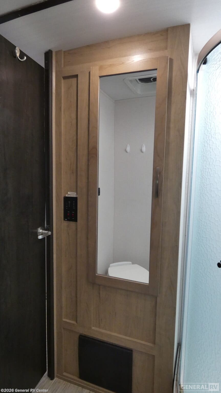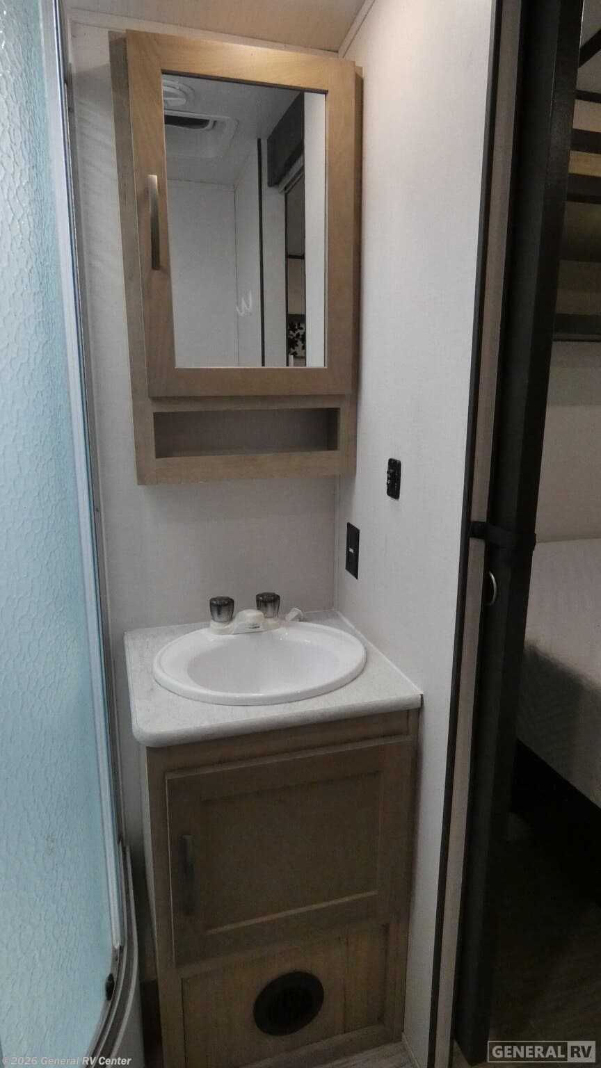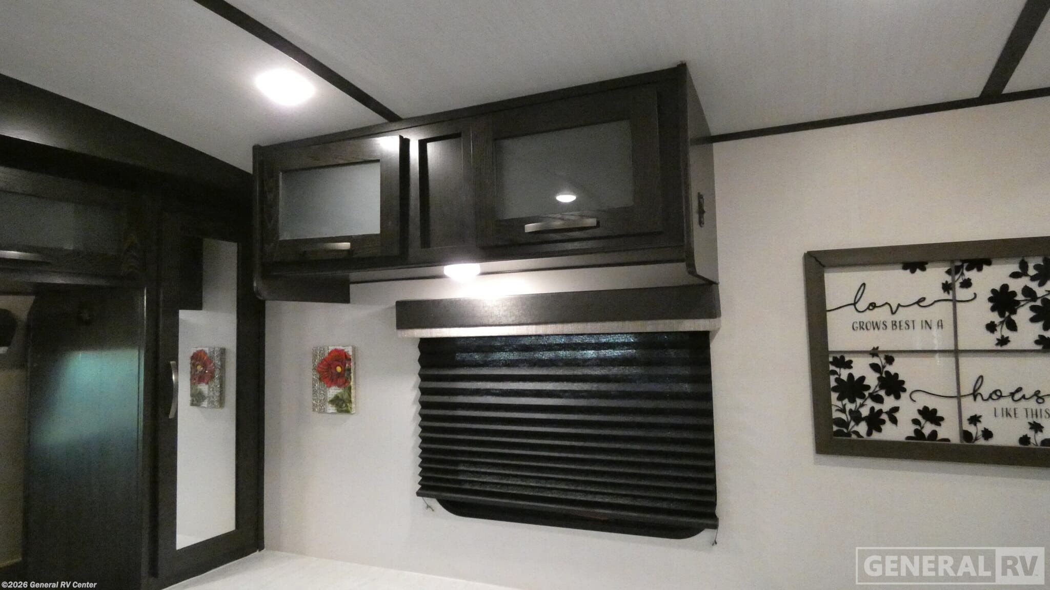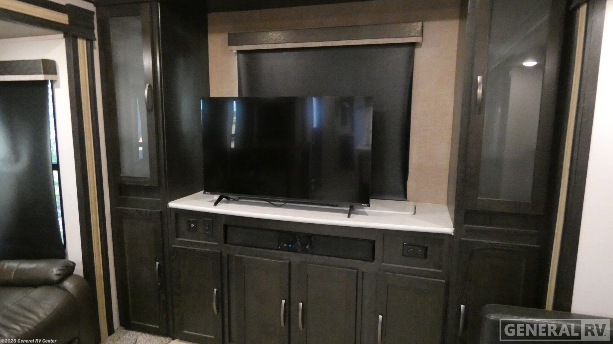Forest River Surveyor Luxury travel trailer 33KRETS highlights: Stainless Steel Appliances Super Storage Center High Rise Kitchen Faucet Rear Entertainment Center LED Lighting When you are ready for a relaxing time away from home, choose this Surveyor 33KRETS travel trailer. You can comfortably spend time visiting with your family and friends in the rear living area on either the sofa or one of the two theater seats. Along the rear wall there is an entertainment center where you can watch movies or your favorite show on the 50" LED TV. The kitchen has a large counter peninsula with a double sink and a high rise goose neck faucet, plus a pantry that is big enough for you to bring along all of your favorite camping snacks. In the front private bedroom, you will find a king bed with a super storage center below and a large wardrobe along the front wall of the room with a bench, as well as a vanity across front the bed. Outside there is more storage with the pass-through storage area with LED lights, and a 20' electric awning with plenty of shade so now you can spend more time outdoors! For any camping trip you will want a Forest River Surveyor travel trailer. These models are lightweight and easy to tow, plus you will find that inside there is superior craftsmanship throughout. Along the interior there is a barreled ceiling which adds more headroom in each model and stainless steel appliances for an added at home feature. The designer Carefree flooring is stylish and easy to clean, plus there is a Furrion Bluetooth stereo for you to crank up the tunes. Along the exterior you will enjoy convenient features like the outside shower, the electric awning with LED lights, and the pet friendly utility hook with food bowls too. It is now easier than ever to choose a travel trailer that is ideal for you! What are you waiting for? Come select your Surveyor travel trailer today!
