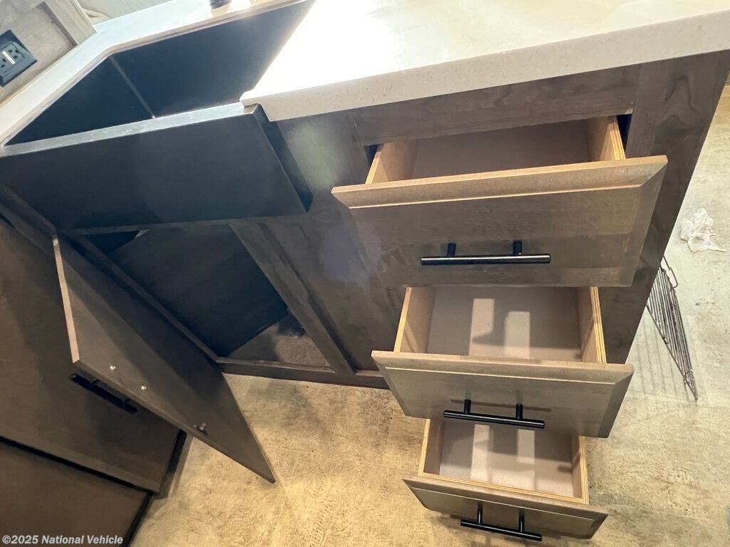 The family chef will love the fully equipped kitchen, complete with a countertop peninsula, three-burner cooktop with oven, 30" microwave, and ample overhead storage for all your essentials. The front master suite features a king bed, full-width wardrobe, and dual-entry access to the main bath.