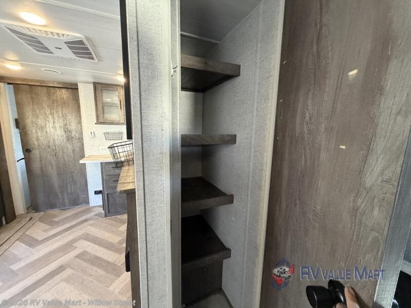 As you escape to the beautiful countryside or embark across the country to visit family, you'll find that the modern amenities found in this Wildwood travel trailer will deliver the ultimate enjoyment all along the way! Relax on the 8' chaise lounge that includes a table in front so you can enjoy your morning coffee. When you are ready to face the day ahead, you can grab a towel from the linen closet in the rear bathroom and rinse off in the walk-in shower before heading out for a day full of adventure. This model also includes a walk-in pantry for all the goodies!