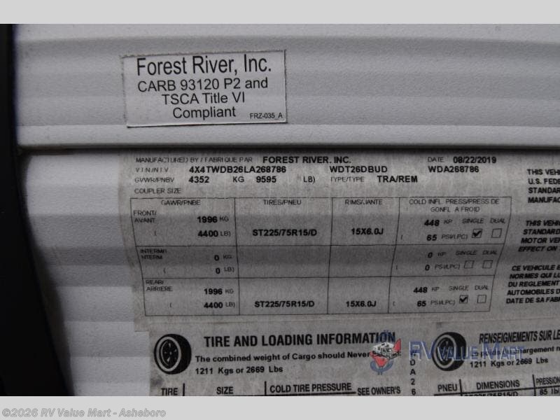 2020 Forest River Wildwood 26DBUD Specifications