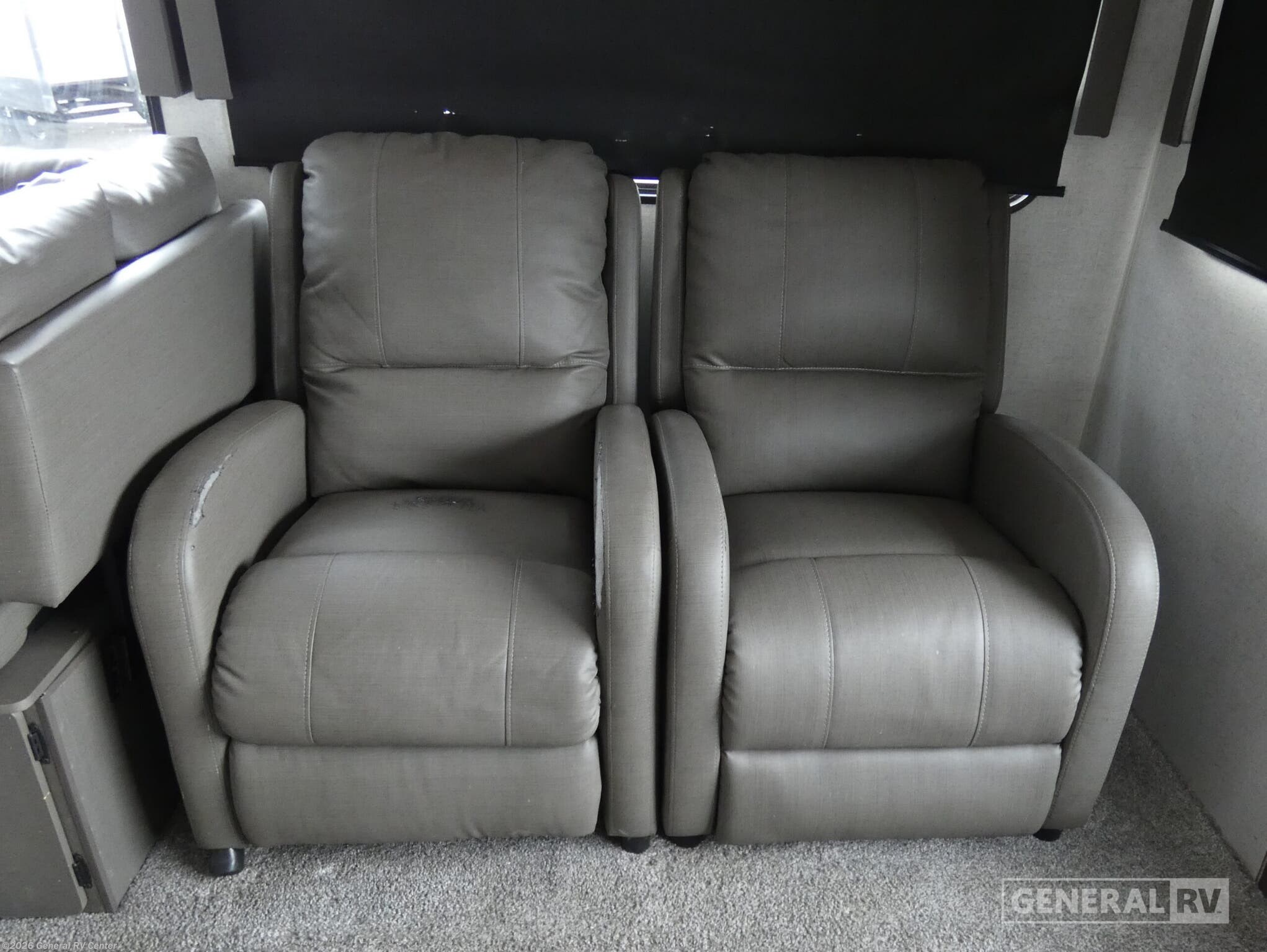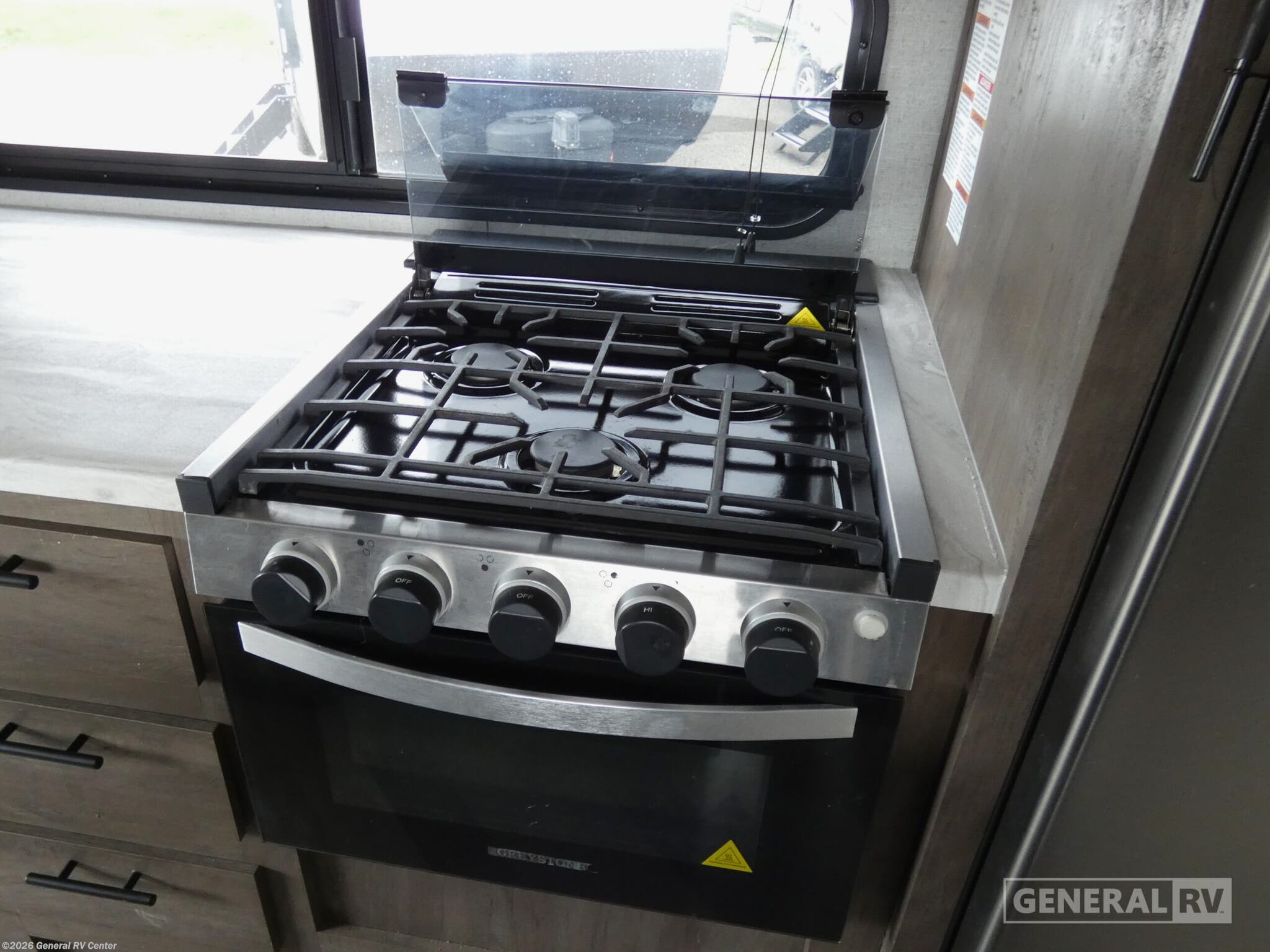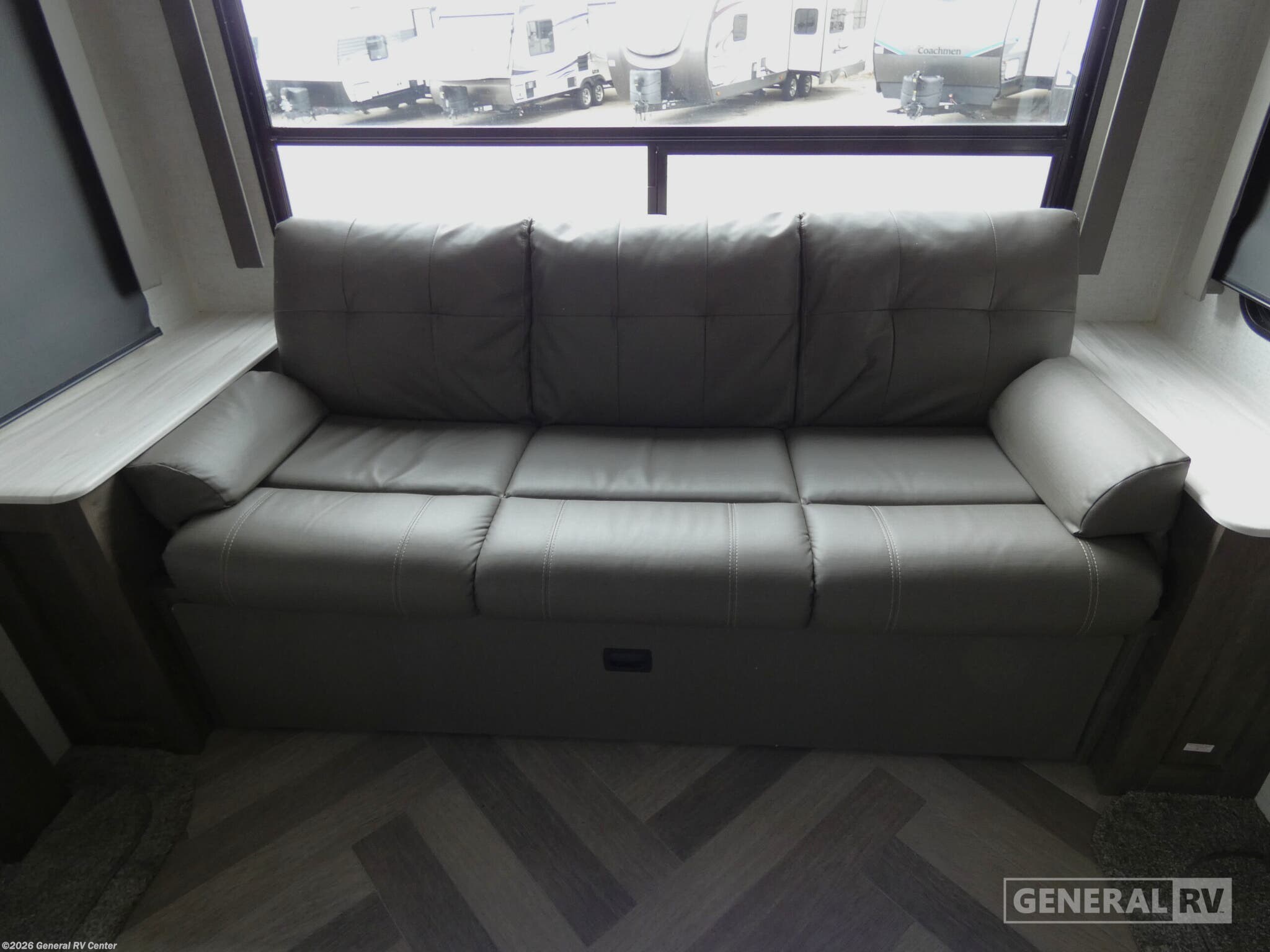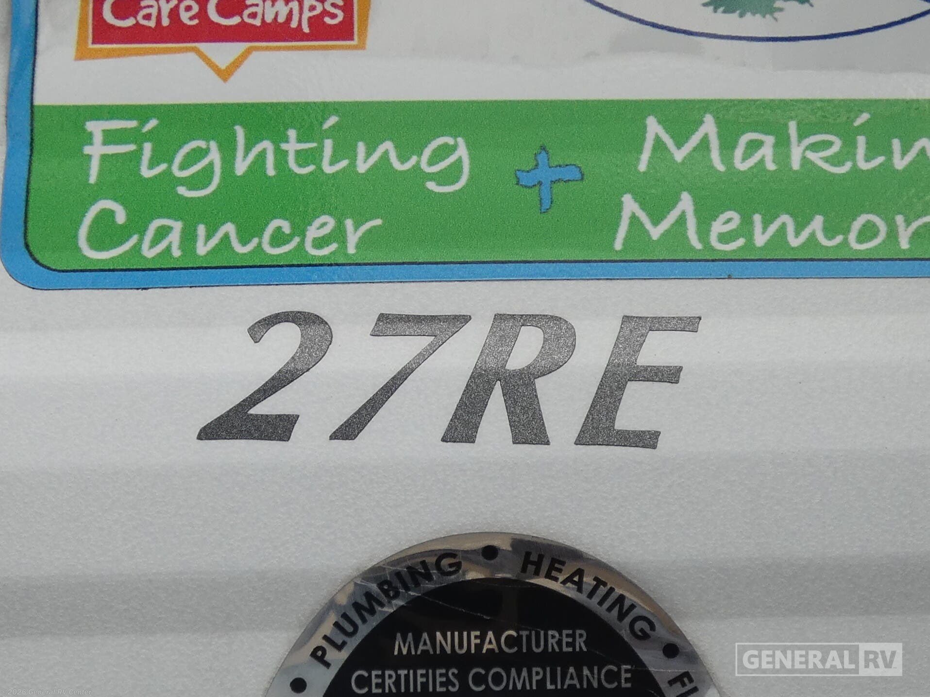 Forest River Wildwood travel trailer 27RE highlights: Dual Opposing Slides Rear Living Area Fireplace Kitchen Island Two Awnings Pack up the kids and bring the dog along for a fun family vacation in this double slide out travel trailer. This unit features a rear living area with a sofa, plus an entertainment center with a fireplace for a cozy evening. With the queen bed in the private bedroom, plus the dinette and sofa, you can sleep six campers each night. The kitchen island provides more counter space, plus mom will love having a pantry for canned goods or snacks. This model also includes two lounge chairs for a relaxing evening. With each Midwest region Wildwood travel trailer by Forest River you will enjoy many interior comforts, like the Herringbone pattern luxury vinyl flooring, the Evergreen mattress, the tub surround, plus much more. There is a fully walkable one piece roof that will make cleaning off the top of your unit a snap, each model is also constructed with a powder coated I-beam frame and a tough coat paint exterior. The power awning with adjustable legs will provide an outdoor living space, and the exterior speakers with a blue LED light will keep the party going!