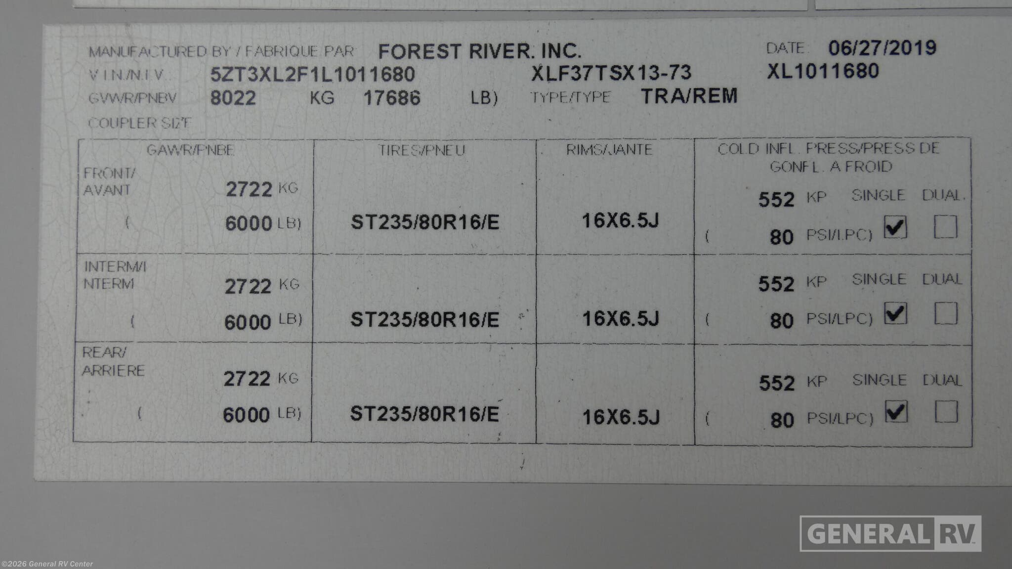 - VIN5ZT3XL2F1L1011680