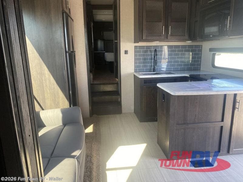 This XLR Thunderbolt toy hauler is the one that you will want by your side as you take the family out to the lake for the weekend! With its capacity to sleep nine people, this unit proves to be a huge asset right from the start, and the loft will be a fun area for the kids to sleep in at night. The two slides are what help you have enough space to enjoy your time spent indoors, and the chef will appreciate having a couple smiling faces sitting at the breakfast bar while they prepare the meal on the three-burner cooktop.