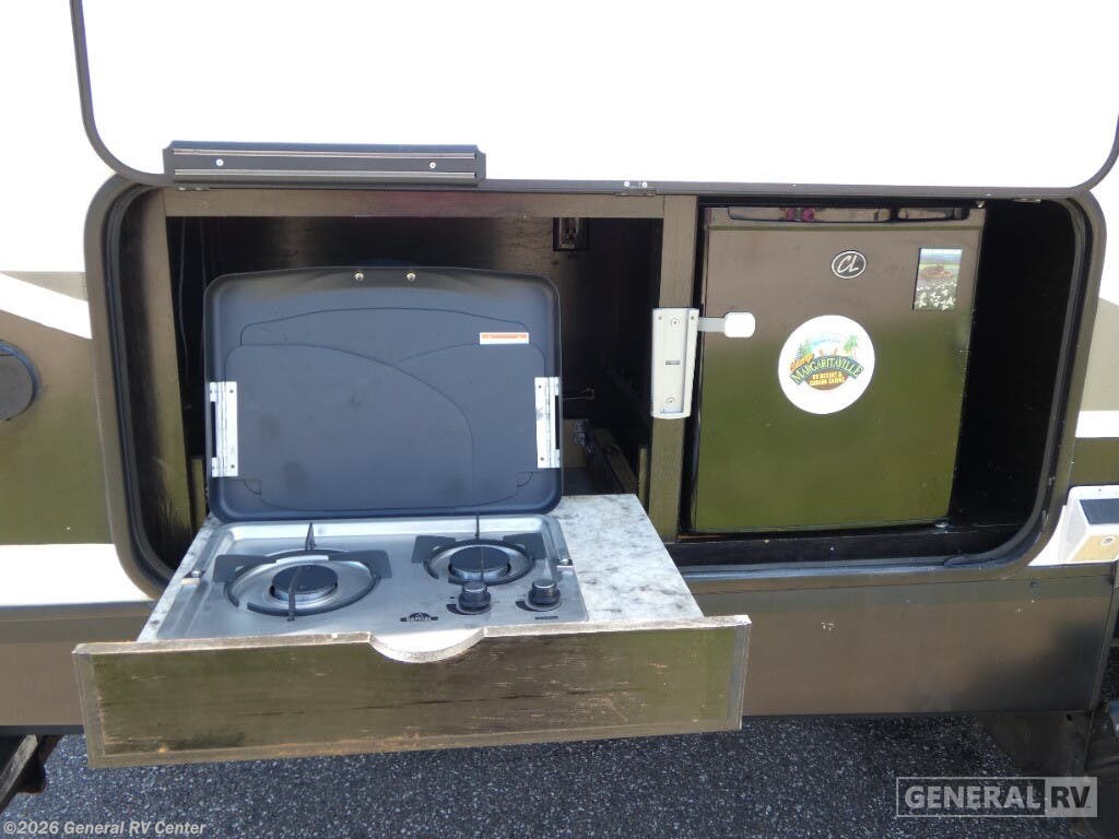 Experience the perfect blend of comfort and adventure with the 2020 Grand Design Imagine 2800BH. This travel trailer is designed to accommodate up to ten guests, making it ideal for family trips or gatherings with friends. The clever floorplan features a front bedroom with a cozy queen bed, while the rear hosts double-over-double bunks, ensuring everyone has a comfortable place to rest. With the convertible tri-fold sofa and booth dinette, there's plenty of space for everyone to relax and enjoy meals together. The center kitchen is equipped with a three-burner cooktop and mid-size refrigerator, offering all the essentials to whip up your favorite meals on the road. The spacious living area is perfect for entertainment, with a 32" LED TV on a swing arm for optimal viewing. Step outside and enjoy the convenience of the 19-foot powered retractable awning and an outdoor kitchen, perfect for those sunny days spent grilling and enjoying the great outdoors. This model is not just about comfort; it's built for convenience and utility. The drop-frame pass-thru storage provides ample space for all your gear, while the aluminum entry steps and universal docking station add to the ease of use. With a fresh water capacity of 52 gallons, gray water capacity of 76 gallons, and a black water capacity of 39 gallons, your adventures can be as extended as you wish. Discover the freedom of the open road with the Imagine 2800BH, and for more details, visit your nearest General RV dealership.