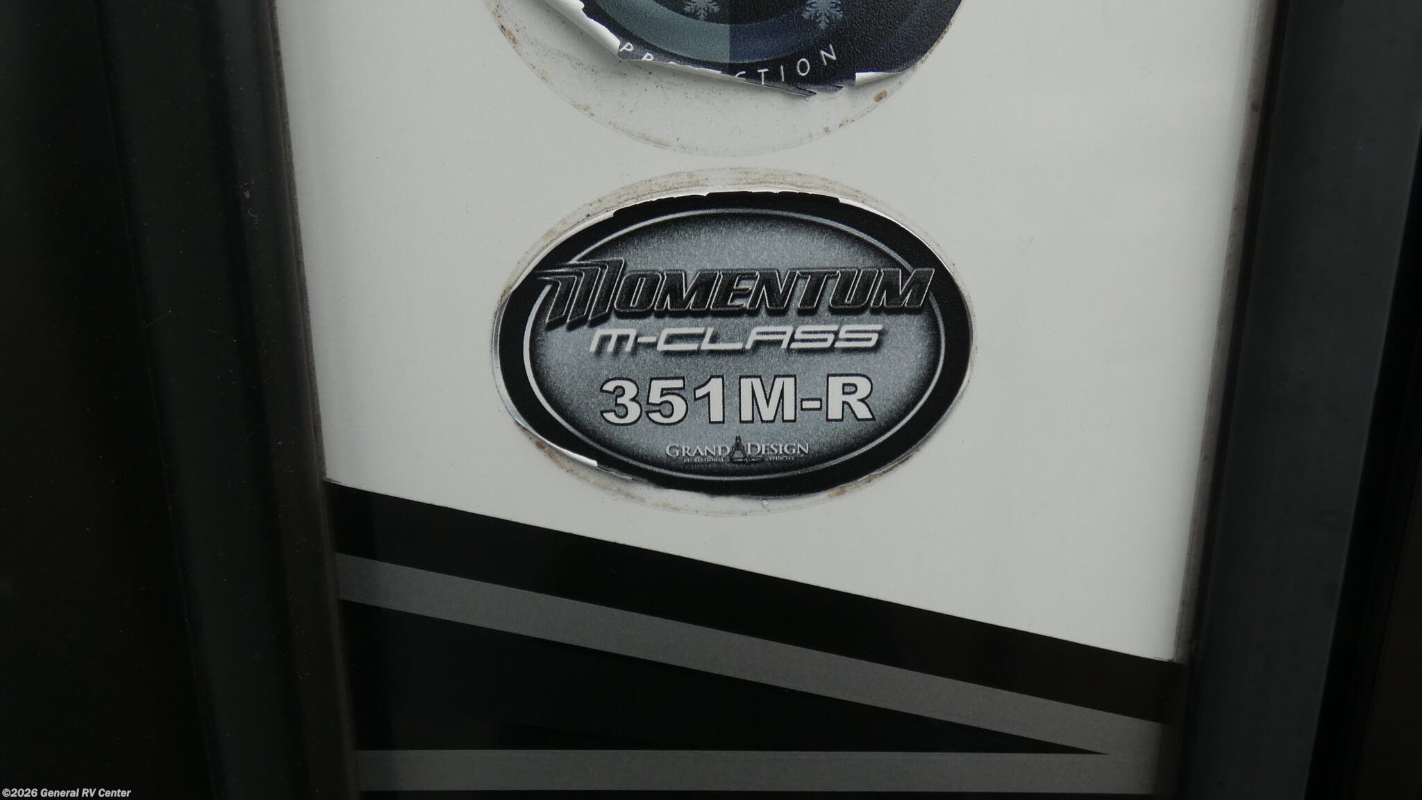 **Grand Design Momentum M-Class 351M toy hauler highlights:** - Loft - Dual Entry - Four-Seat Sofa - Kitchen Island w/ Stools - Dual Enclosed Fuel Station When the outdoors is all you think about, and you are looking for a weekend thrill, choose this Momentum M-Class 351M toy hauler fifth wheel by Grand Design. You will find plenty of space for a few off-road toys as well as there is plenty of comfortable living space throughout. The garage features 11' of space for an ATV or dirt bikes, plus includes a half bath. There are also plenty of windows providing natural lighting in each area. The kids are sure to enjoy eating at the kitchen island on the bar stools, or watching the 49" LED TV above the fireplace. There are many more standard features to see! With any Momentum M-Class toy hauler fifth wheel you will enjoy extraordinary living with extreme playtime with the Weather-Tek insulation for four seasons of protection, and a fully enclosed fuel pump station to keep the fun going the whole time. The Tuff-Ply garage flooring is gas and oil resistant, plus triple insulated. You will find 2,500 lb. rated flush-mount tie-downs to keep your toys secure while moving down the road. The interior includes a sofa with headrest and removable swivel table, a convection microwave, a central vacuum system with tools and a dust pan, and a satellite/solar roof access channel to mention a few highlights. Any Grand Design Momentum M-Class allows you to keep your active lifestyle no matter where you decide to stay!
