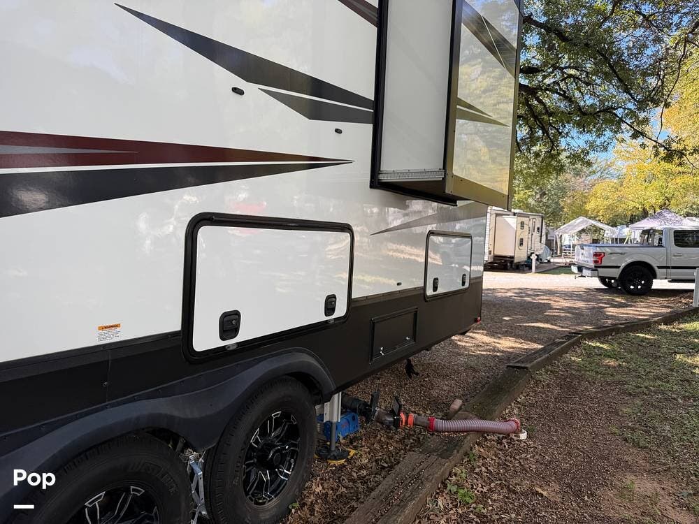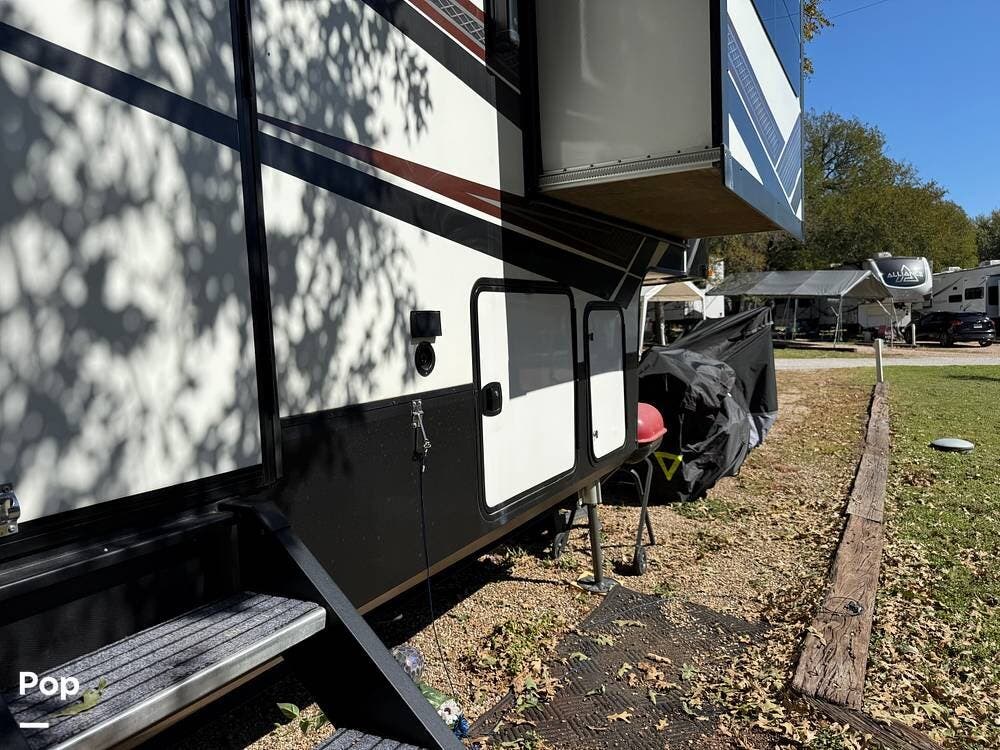 This 2020 Momentum 376TH is a 41' toyhauler located in Denton, Texas.