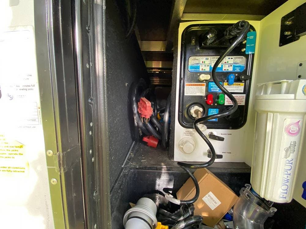The camper has 2 black water and 2 grey water tanks (the garage bathroom has its own black water and grey water tank).