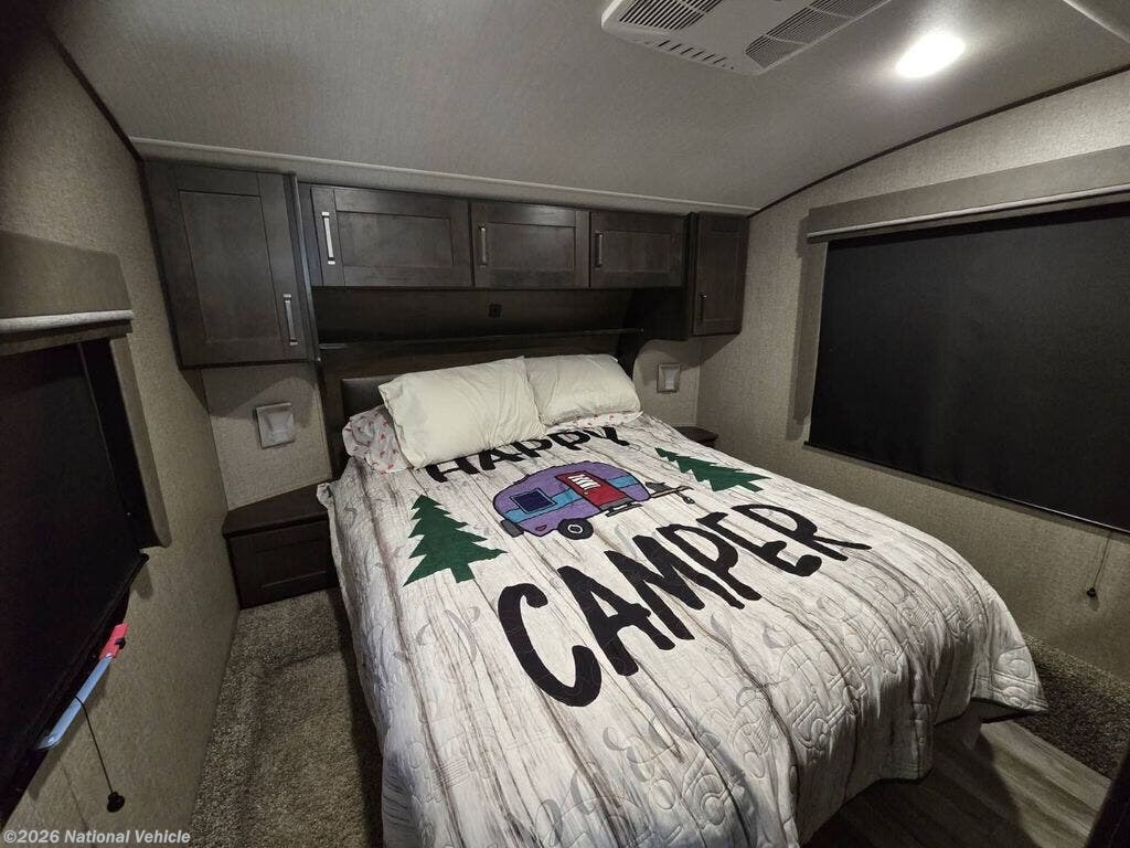 The 2020 Grand Design Reflection 260RD Fifth Wheel delivers a perfect blend of comfort, quality, and thoughtful design in a 29' 9" travel home that?s ready for weekend trips, extended stays, or full-time RV living. Step inside and experience a bright, open interior enhanced by slide-outs that expand the living and dining areas, creating a welcoming space to relax, entertain, and make cherished memories. The well-appointed kitchen features modern appliances, solid surface countertops, and plentiful storage - making meal preparation on the road both convenient and enjoyable. The comfortable living area offers cozy seating and great sightlines to the entertainment center, while the private bedroom provides a peaceful retreat at the end of the day. A full bathroom adds residential-style comfort, and clever storage solutions throughout keep gear and essentials organized and accessible. Built with Grand Design?s reputation for durability and customer-focused features, the Reflection 260RD also includes exterior conveniences like pass-through storage and an integrated awning to expand your outdoor living space. Combining comfort, style, and versatility, the 2020 Reflection 260RD makes every journey feel like home.