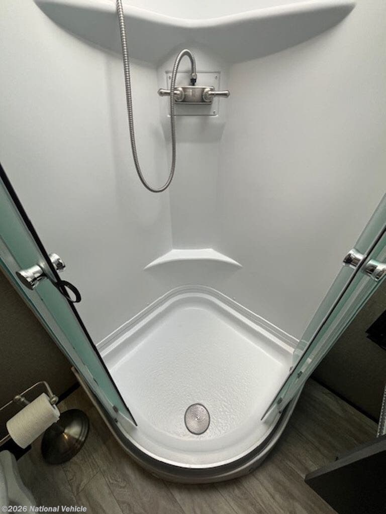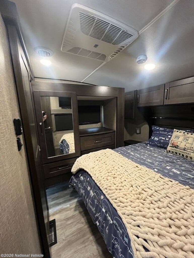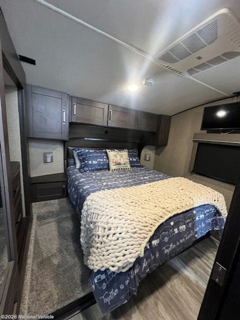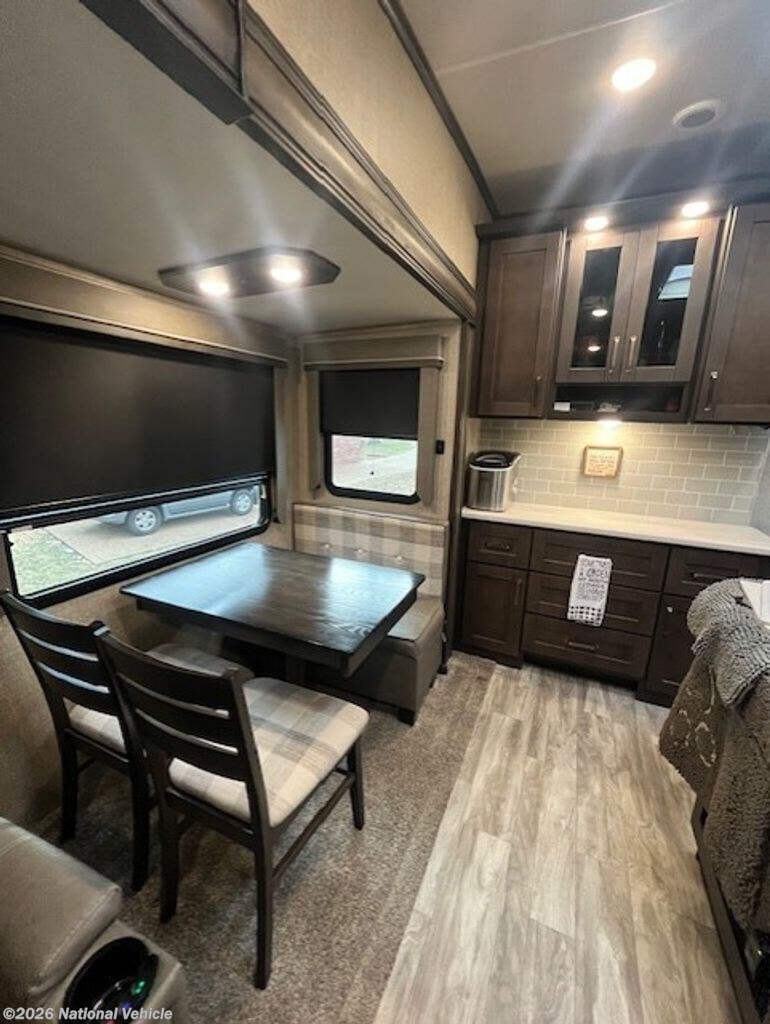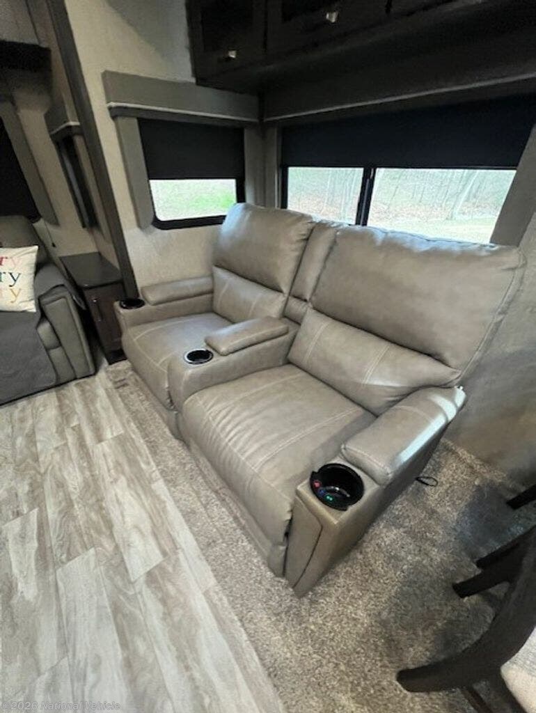 Inside, it?s all about comfort. You?ll find two A/C units, a furnace, and an electric fireplace to keep things cozy in any season. The living space is dialed in with heated, lighted theater seating with massage, a sofa bed, and an inviting dining area with a table, two chairs, and a bench. Solid surface countertops, a stovetop, oven, and convection microwave, plus a well-maintained kitchen mean everything works exactly as it should?because it does.