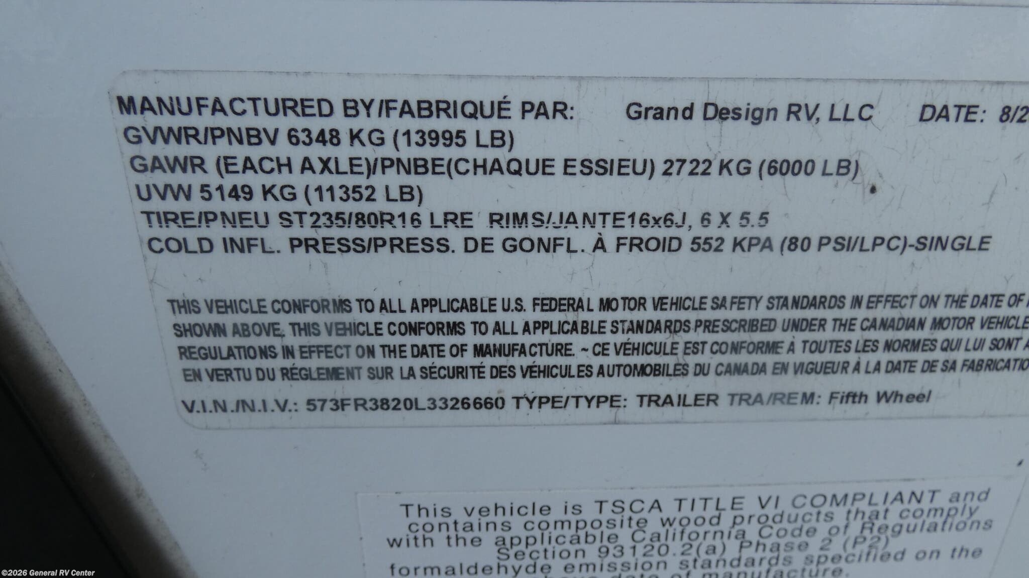 - VIN573FR3820L3326660