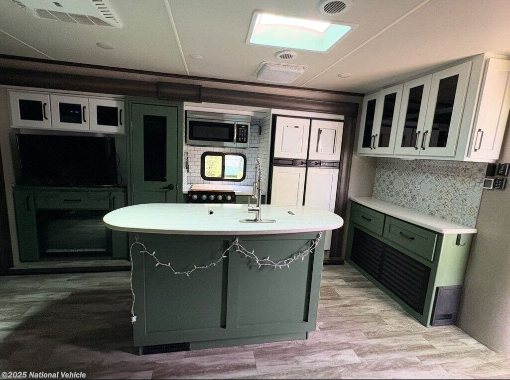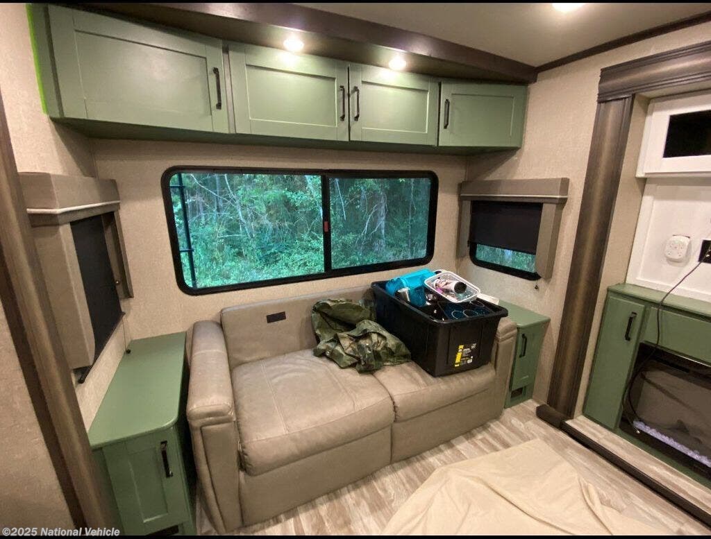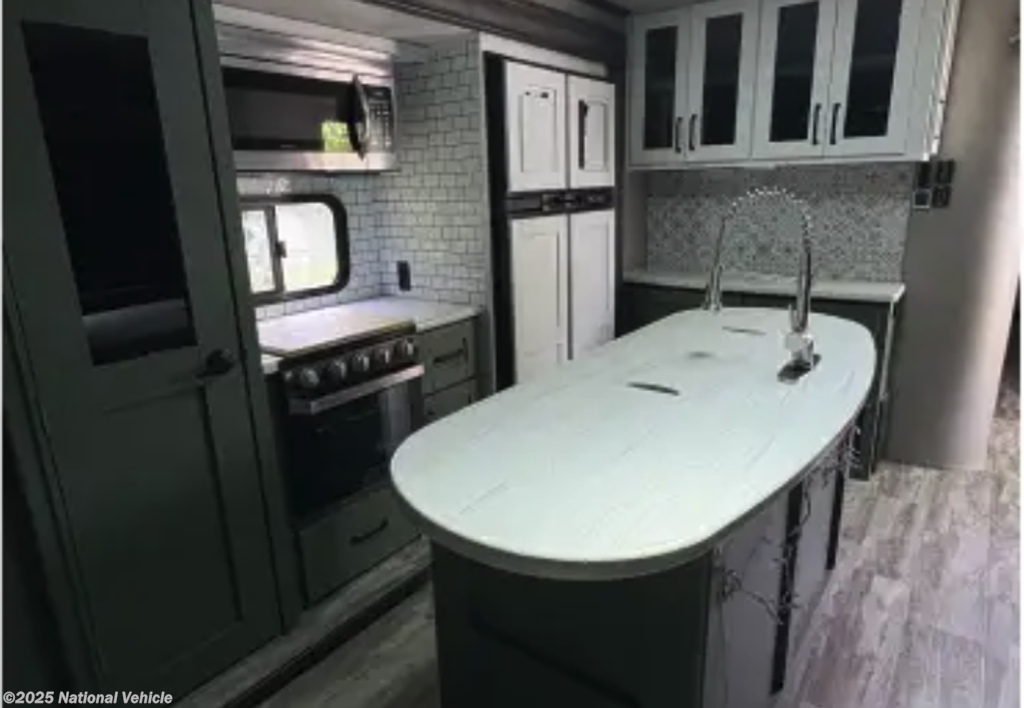 Step inside and you?ll immediately notice the adorable custom paint accents, thoughtfully done in sage tones that create a calm, homey vibe. The subway tile backsplash, spice racks, and tasteful decor add charm and functionality to the kitchen area. Every detail has been chosen to make this RV both beautiful and practical.