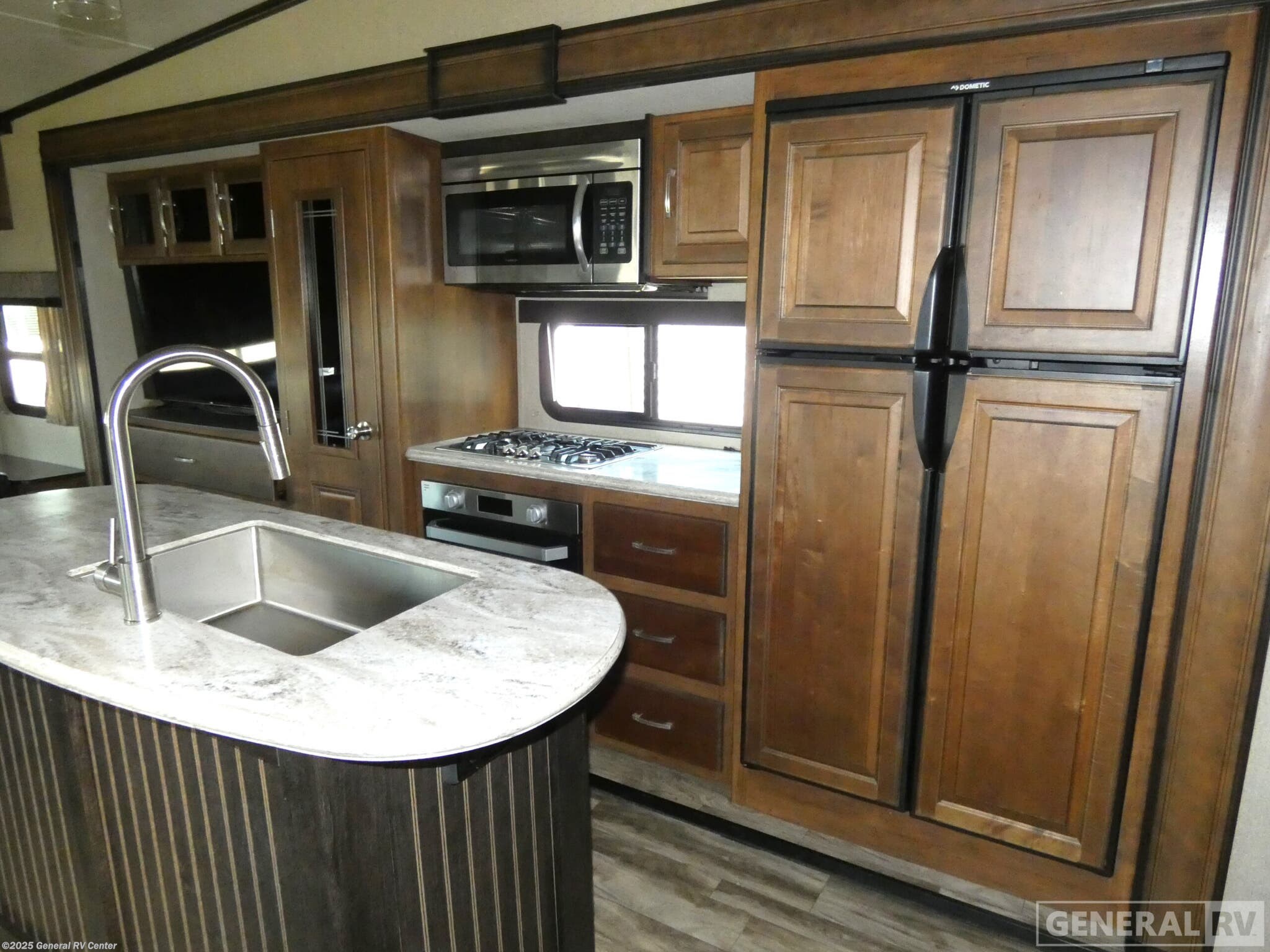 Grand Design Reflection 337RLS fifth wheel highlights: 12 cu. ft. Refrigerator Hutch Front Private Bedroom Fireplace Kitchen Island Do you wish to escape the hustle and bustle of your busy life? Well then, check out this Reflection fifth wheel! It features everything you will need to have yourself a good time from the rear living area with a 40" TV and a cozy fireplace for you to warm up at night with to the kitchen island with a large sink to make your cleanup a breeze. You will love all that the exterior has to offer with the two awnings, the coax TV hookup, and the unobstructed pass-through compartment to hold all of your outdoor gear. At night, you can pop a bag of popcorn in the convection microwave and relax on either the tri-fold sofa or the theater seats. Take a look today! Each Reflection fifth wheel by Grand Design offers luxury along with easy towing to your favorite destinations with the aerodynamic front cap including Max Turn Radius. The Universal All-In-One docking station, LP Quick Connect, and One-Touch electric awning with LED lighting makes setting up and packing up easy for those weekenders or full-timers that like to move around. Inside, you will find the bedroom is complete with a residential queen mattress, a king size wardrobe, oversized underbed storage, and much more! The Arctic 4-Seasons Protection package allows you to camp anywhere and anytime of the year with its heated and enclosed underbelly, EZ winterization, dual attic vents, plus so much more. Come choose your favorite model today!