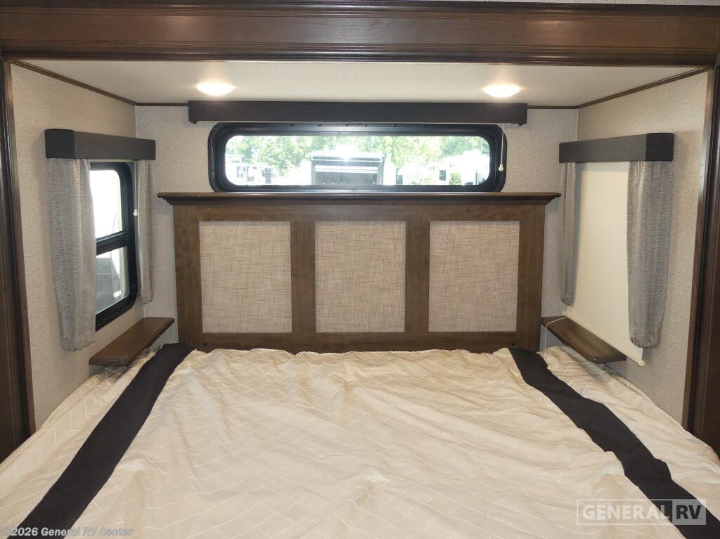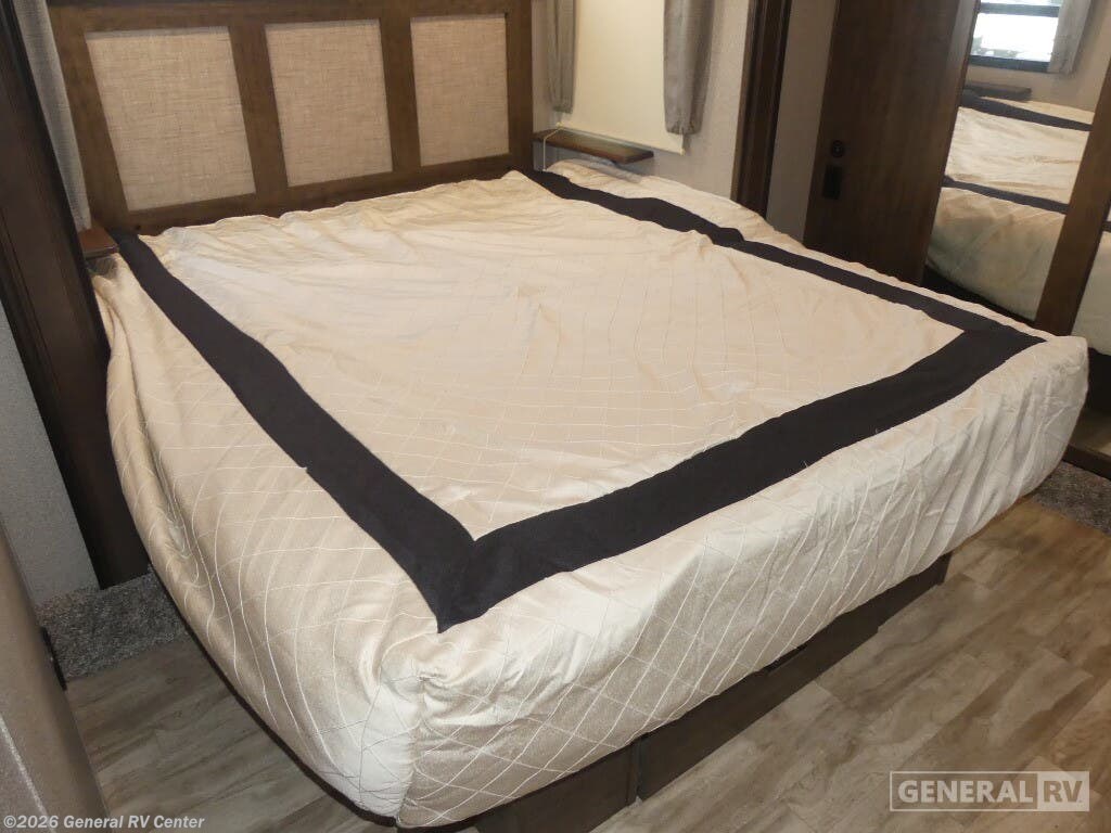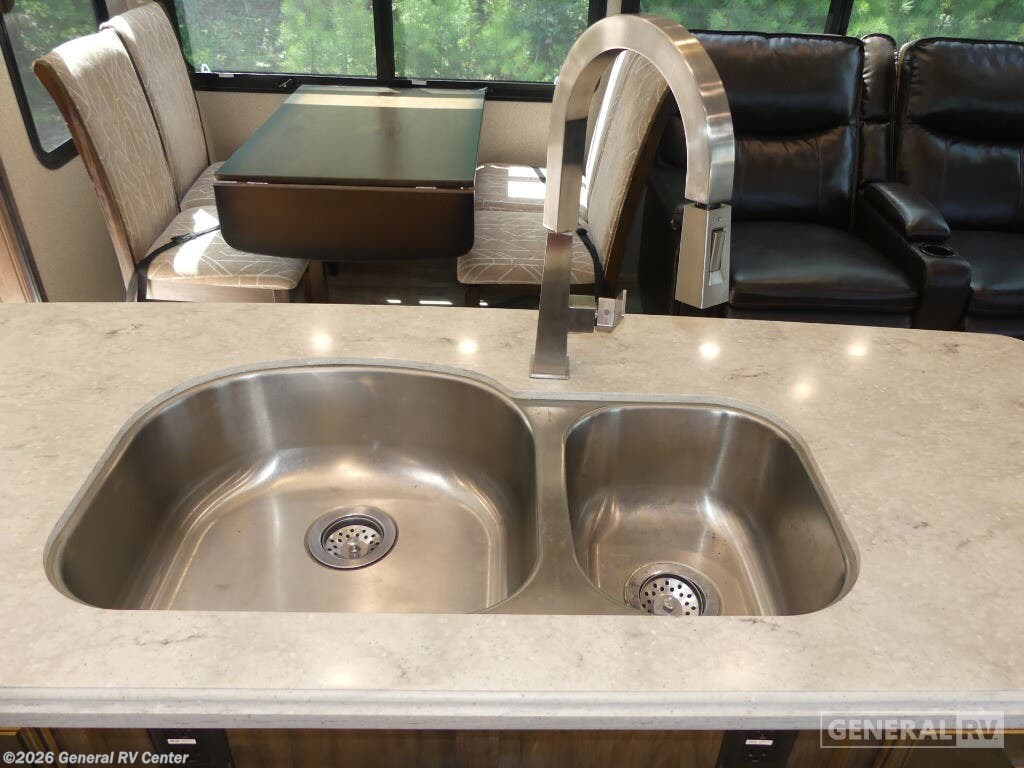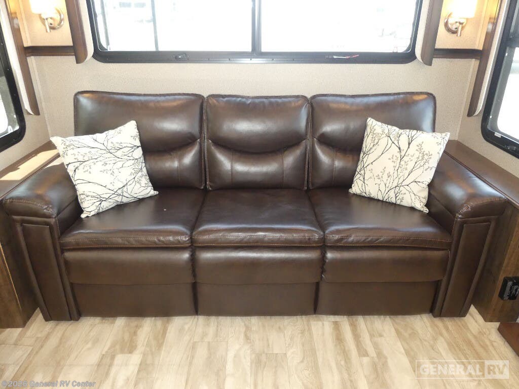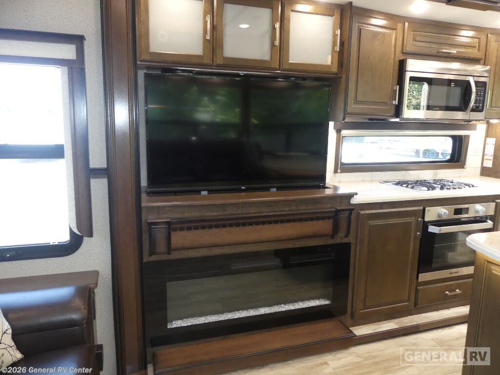 Experience the pinnacle of luxury and comfort with the 2020 Grand Design Solitude 310GK. This exquisite fifth wheel is designed to be your home away from home, offering a spacious and inviting layout perfect for both relaxing and entertaining. As you enter, you'll be greeted by a stunning rear living area featuring a tri-fold sofa and theater seating, ideal for cozy evenings by the fireplace. The center kitchen is a chef's dream, equipped with a full-size refrigerator and a three-burner cooktop, ensuring you have everything you need to create culinary masterpieces on the road. The Solitude 310GK doesn't just promise comfort; it delivers it with style. The front bedroom boasts a luxurious queen bed, with an optional king, surrounded by ample storage and a flip-top dresser with a built-in LED TV for your entertainment. The center bathroom is thoughtfully designed with a shower skylight, providing a refreshing experience. With two powered retractable awnings and a pull-out kitchen option, you can easily extend your living space outdoors, making the most of your adventures. With its impressive cargo capacity and generous water tanks, the Solitude 310GK ensures you're well-prepared for extended journeys. Discover this incredible RV at your nearest General RV dealership and start planning your next getaway!