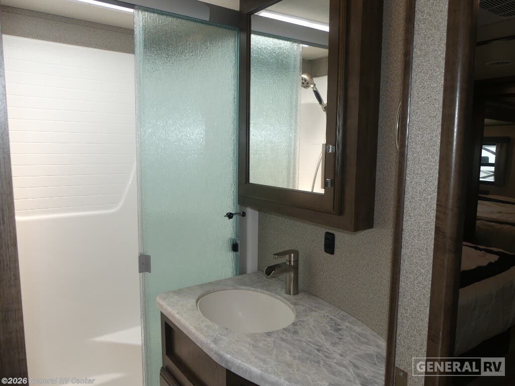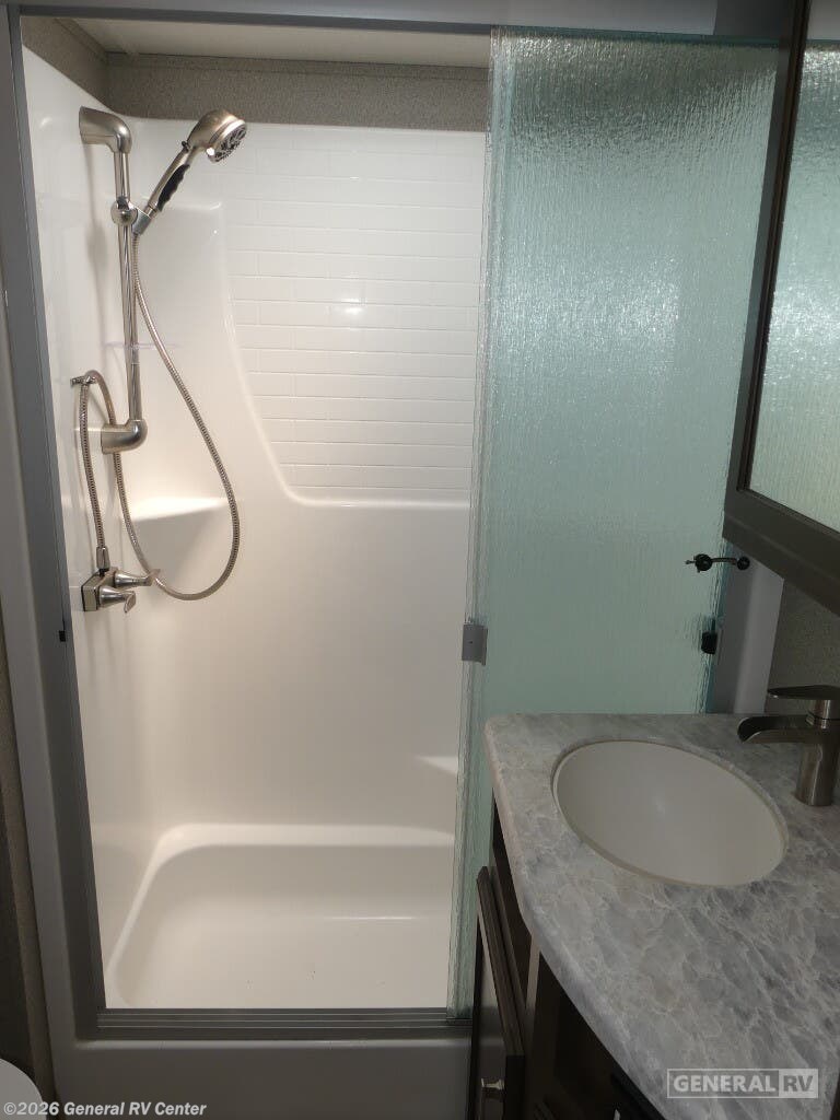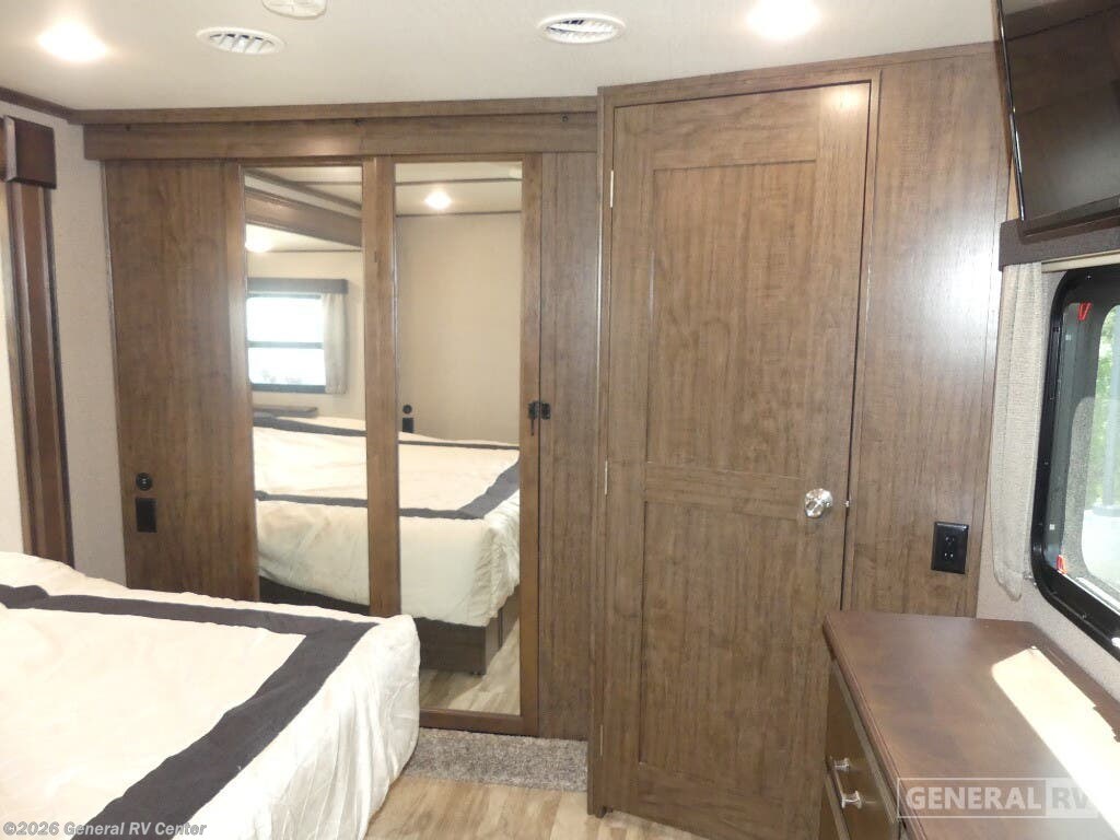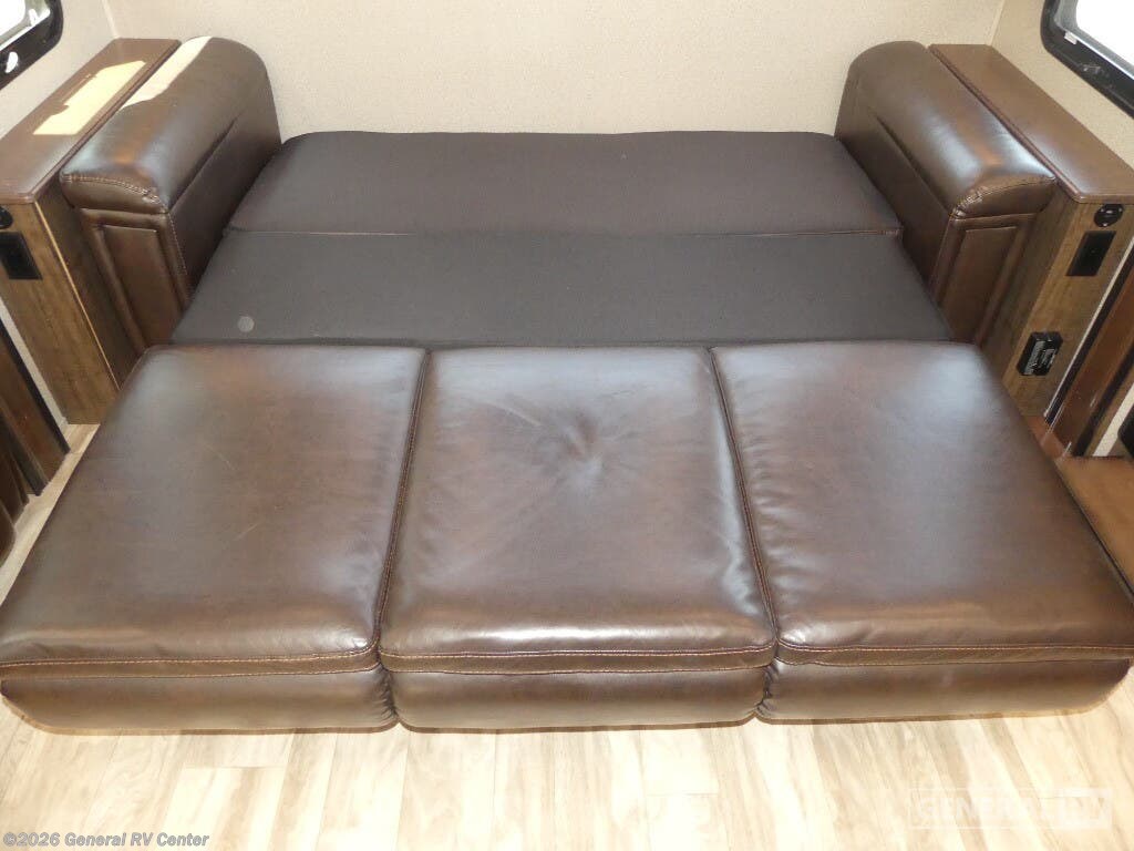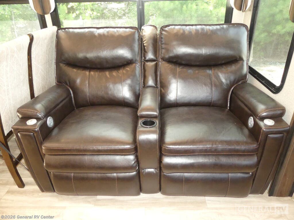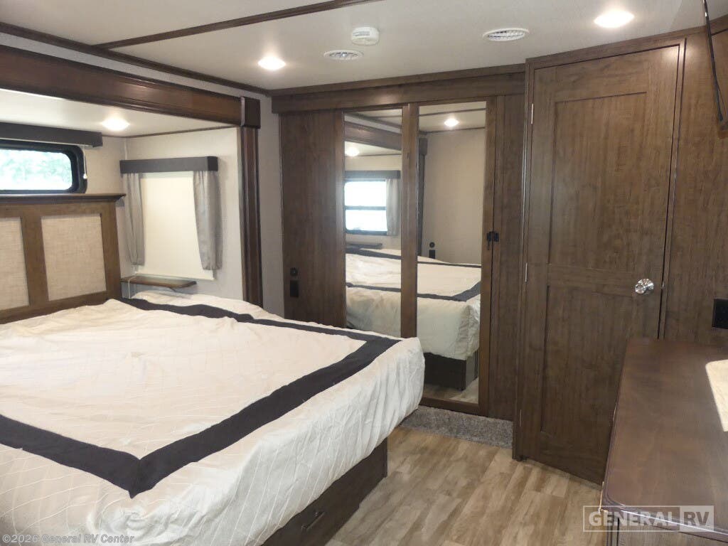 Experience the pinnacle of luxury and comfort with the 2020 Grand Design Solitude 310GK. This exquisite fifth wheel is designed to be your home away from home, offering a spacious and inviting layout perfect for both relaxing and entertaining. As you enter, you'll be greeted by a stunning rear living area featuring a tri-fold sofa and theater seating, ideal for cozy evenings by the fireplace. The center kitchen is a chef's dream, equipped with a full-size refrigerator and a three-burner cooktop, ensuring you have everything you need to create culinary masterpieces on the road. The Solitude 310GK doesn't just promise comfort; it delivers it with style. The front bedroom boasts a luxurious queen bed, with an optional king, surrounded by ample storage and a flip-top dresser with a built-in LED TV for your entertainment. The center bathroom is thoughtfully designed with a shower skylight, providing a refreshing experience. With two powered retractable awnings and a pull-out kitchen option, you can easily extend your living space outdoors, making the most of your adventures. With its impressive cargo capacity and generous water tanks, the Solitude 310GK ensures you're well-prepared for extended journeys. Discover this incredible RV at your nearest General RV dealership and start planning your next getaway!