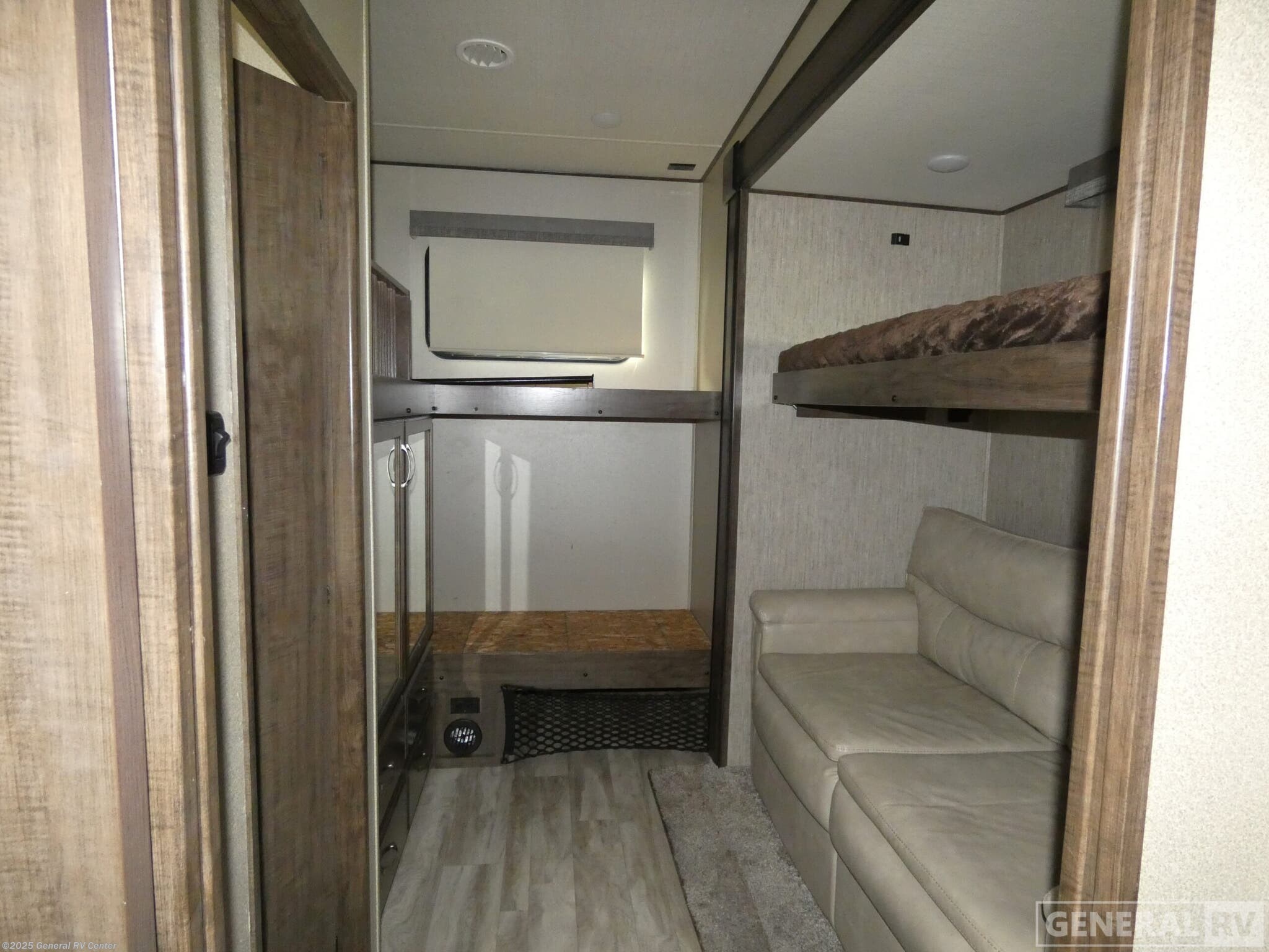 Grand Design Solitude S-Class fifth wheel 3740BH highlights: Private Bunkhouse Quad Bunks Bath and a Half Kitchen Island Dual Entry/Exit Outdoor Kitchen SolidStep Quad Entry Steps Your search is over! Your kids are going to love having their own bunkhouse with a half bath including the second entry/exit into the fifth wheel. That door will surely be opened and closed all day from all the fun outside and inside. The kiddos will enjoy having their privacy, the tri-fold sofa on rainy days, and having their friends stay the night thanks to all the sleeping space in this one room. The main living and kitchen area will impress anyone, and the kitchen appliances allow you to make a thanksgiving meal. You will surely appreciate all the USB charging outlets, the fireplace, the shock assist SolidStep quad entry steps, and the two awnings. Each Grand Design Solitude S-Class fifth wheel offers many residential features at an affordable price for full-timers, extended stay travelers, or weekend warriors. Made to a higher standard, the foundation is built on a drop down chassis, is 8'5" wide with a walk-on roof, includes a MORryde pin box and CRE3000 suspension system, a 4-point or 6-point electric leveling system for quick set up, and has been prepped for solar. Inside you will enjoy taller ceilings, taller and deeper cabinets, the power reclining theatre seating with swivel tables including LED lighting, plus a heat and massage function, a Stealth AC system, and the Weather-Tek package which allows you to travel any season. Choose your favorite model today!