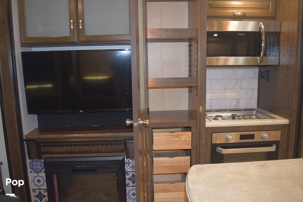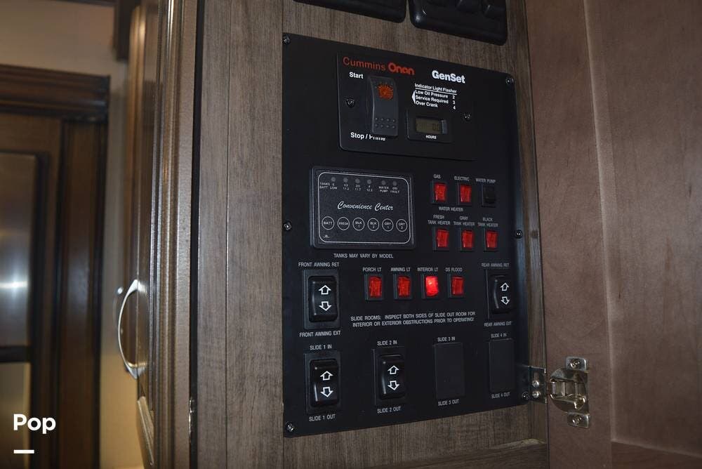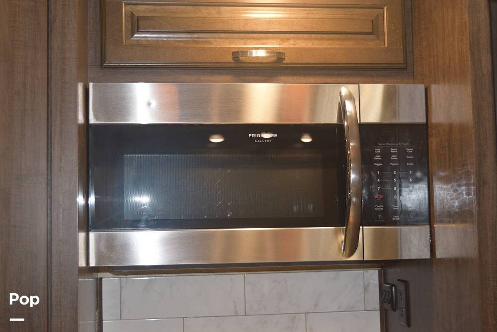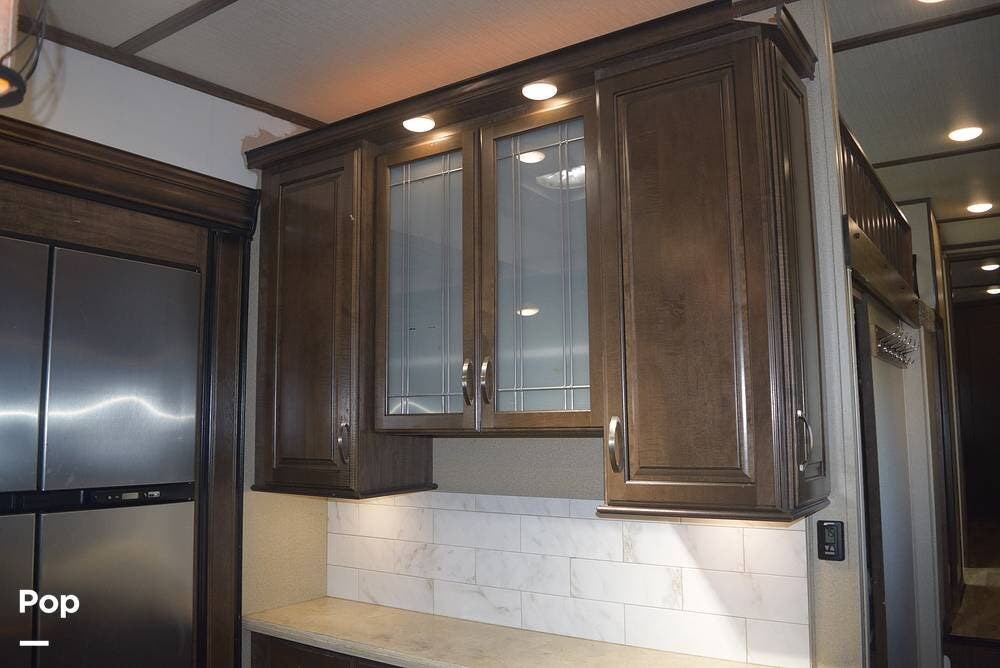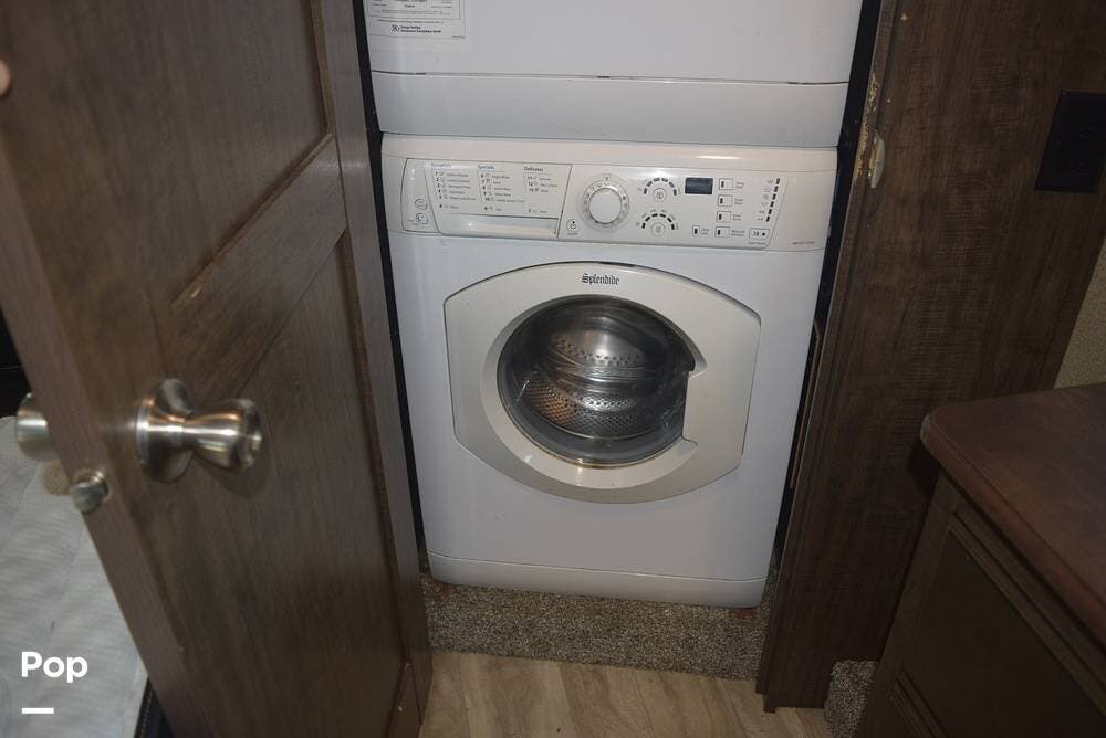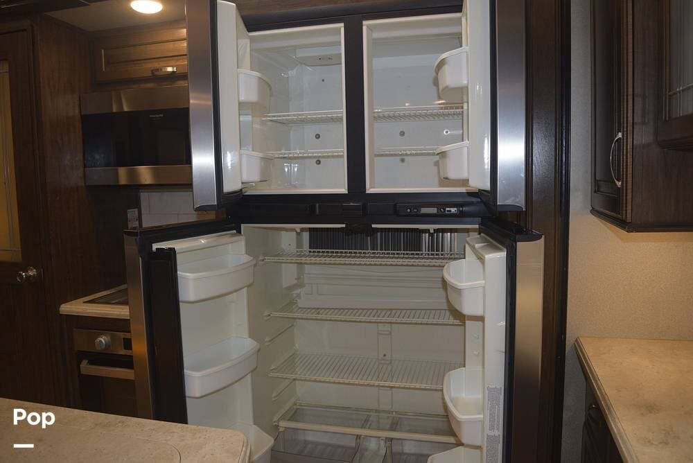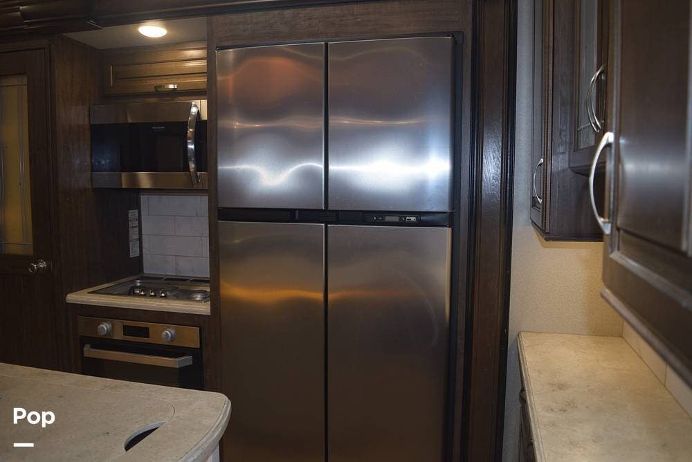 Enjoy residential-style living with premium amenities including a clothes washer and dryer for on-the-road convenience, a backup camera for easy maneuvering, a spacious living area with an entertainment center and fireplace, a gourmet kitchen with solid-surface countertops, a full-size refrigerator, and large pantry, an elegant master suite with king bed and generous storage, and dual A/C units and four-season insulation for year-round comfort.