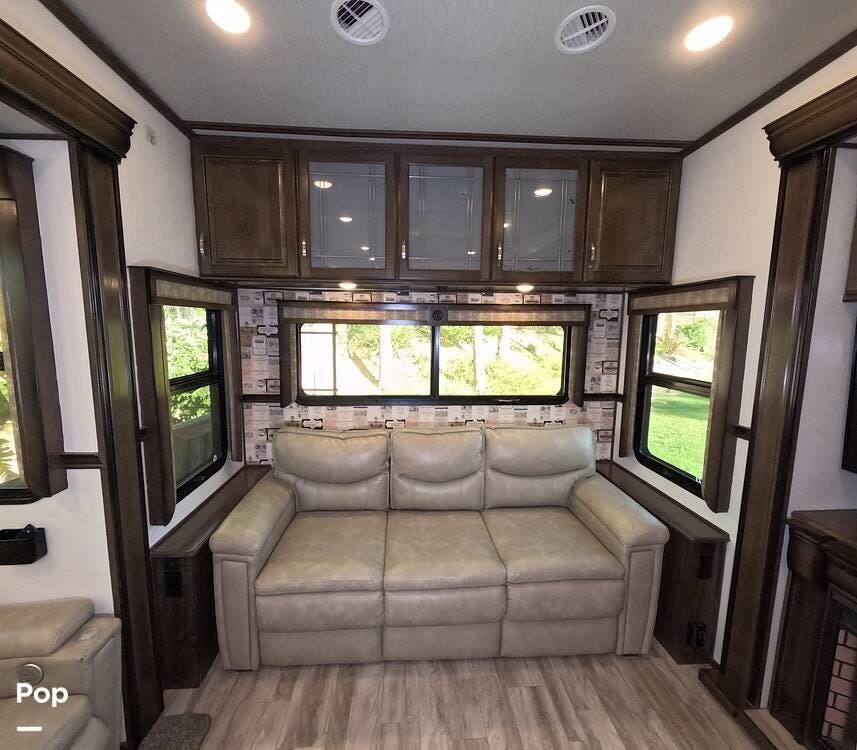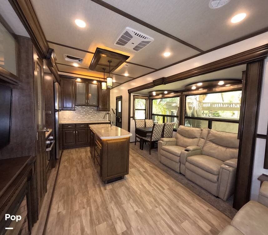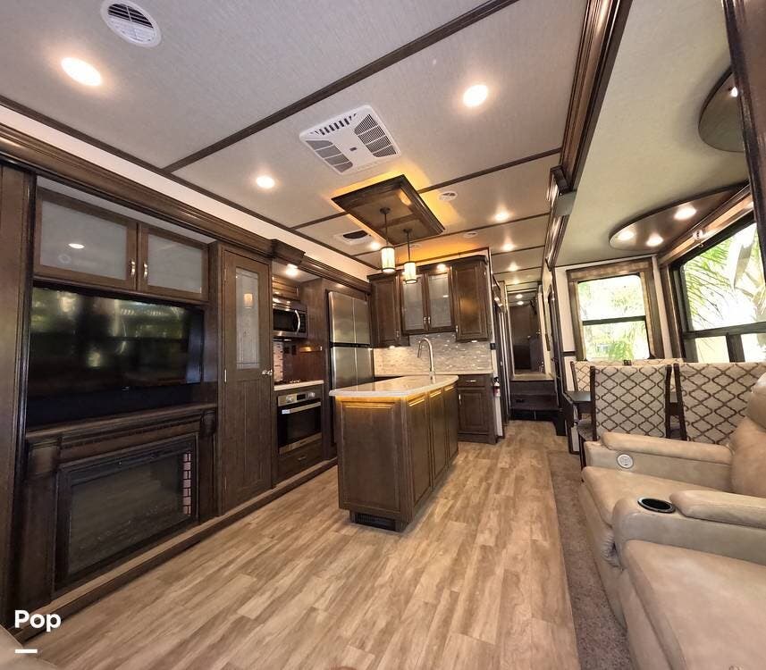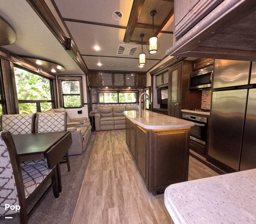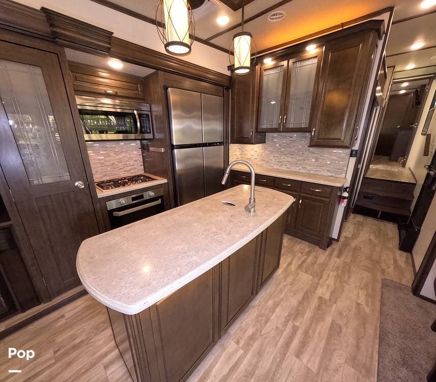 Measuring a generous 40 feet 10 inches in length, this fifth wheel boasts four large slide-outs, significantly expanding your living space and providing an airy, open-concept feel throughout.