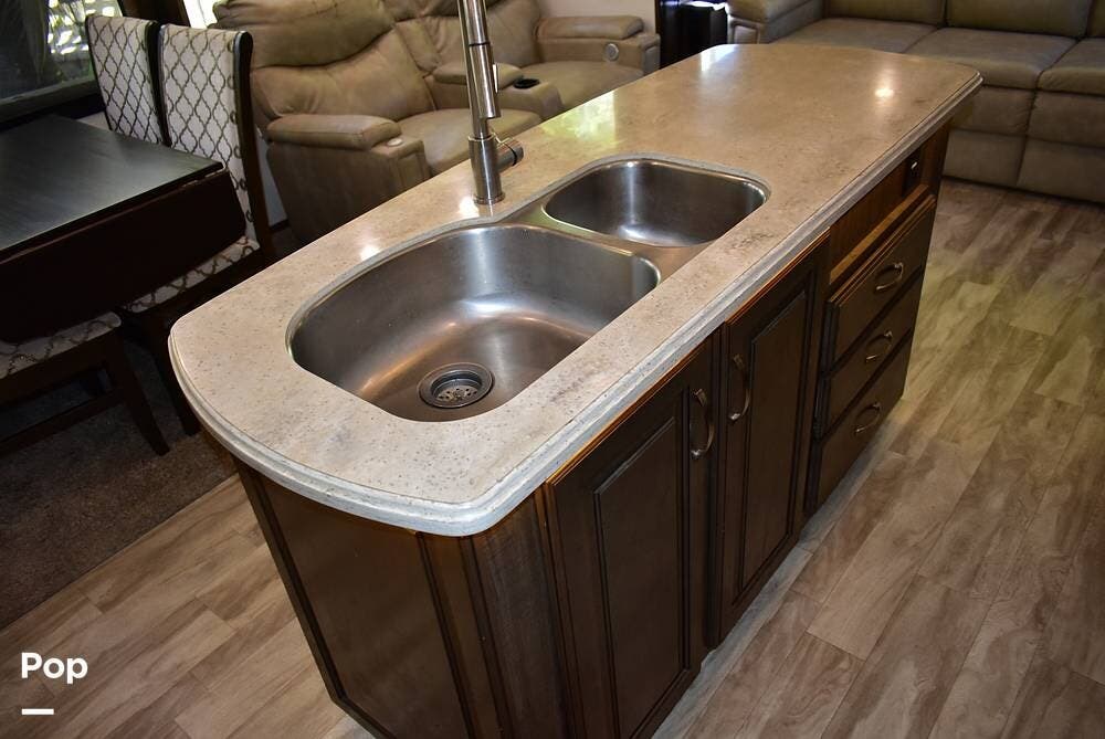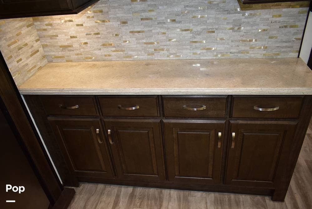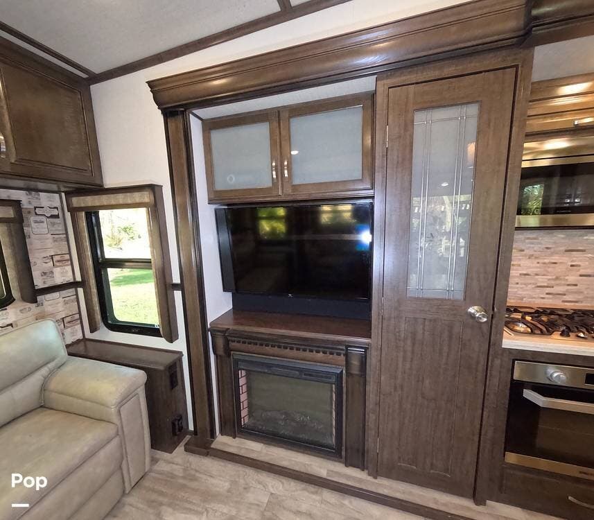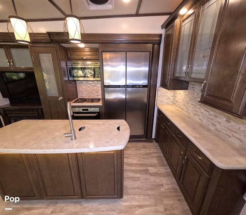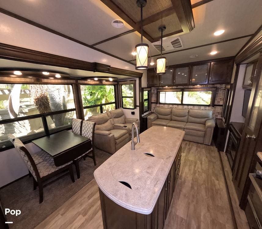 Measuring a generous 40 feet 10 inches in length, this fifth wheel boasts four large slide-outs, significantly expanding your living space and providing an airy, open-concept feel throughout.