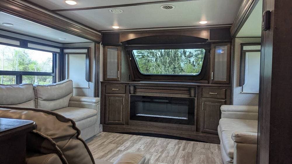 2020 Solitude (by Grand Design) 380FL has 5 slides making it very spacious inside.