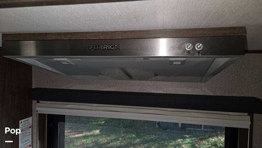 On the comfort and construction front, the unit includes a 30,000 BTU air conditioner and a 35,000 BTU furnace, providing year-round climate control.