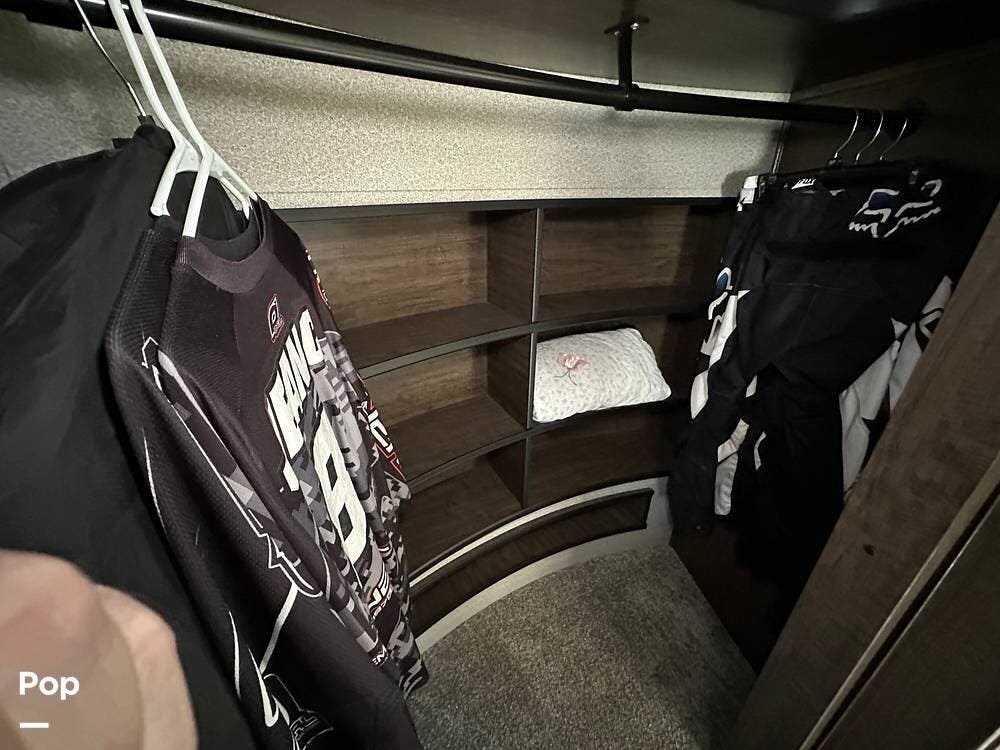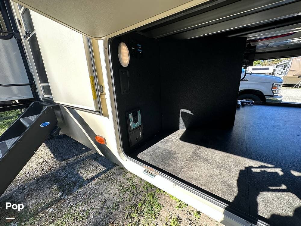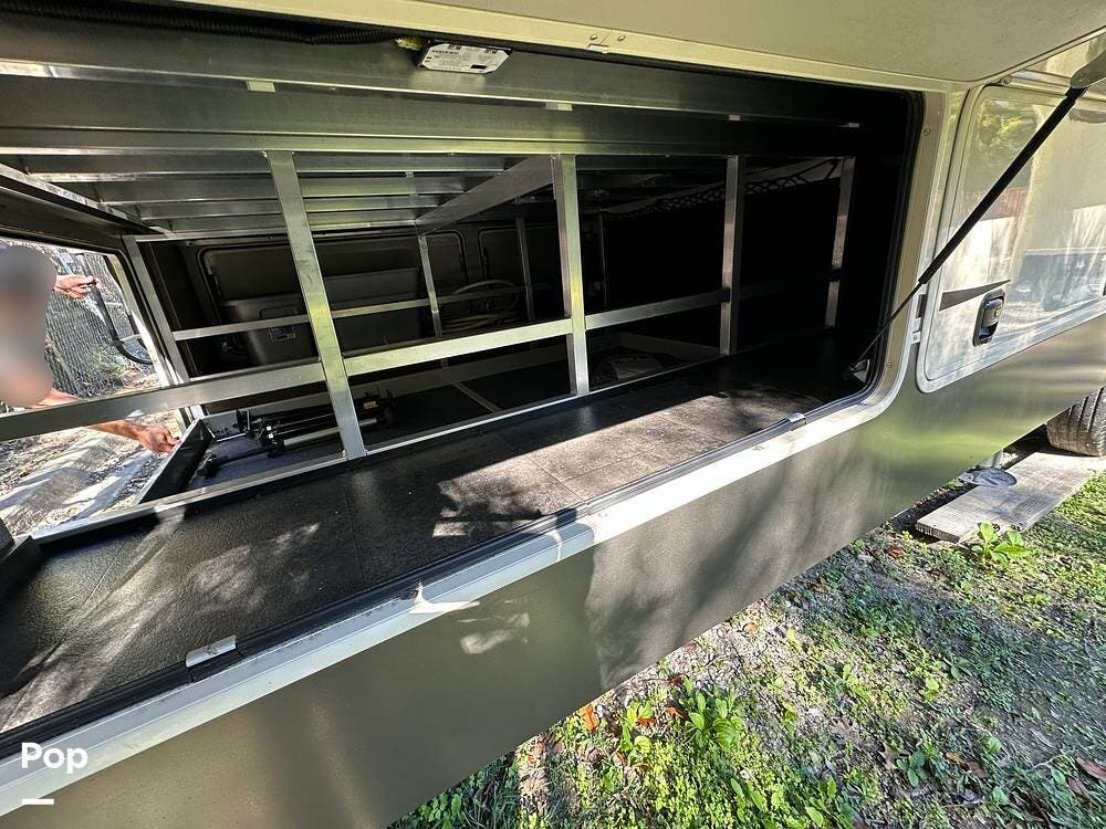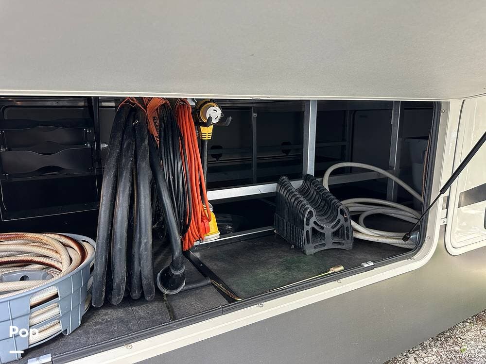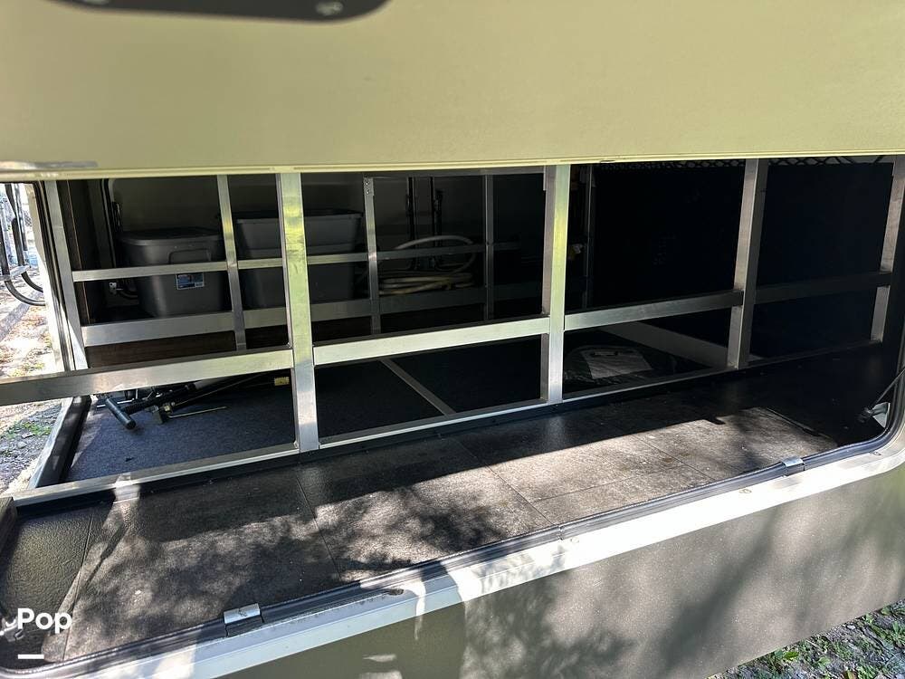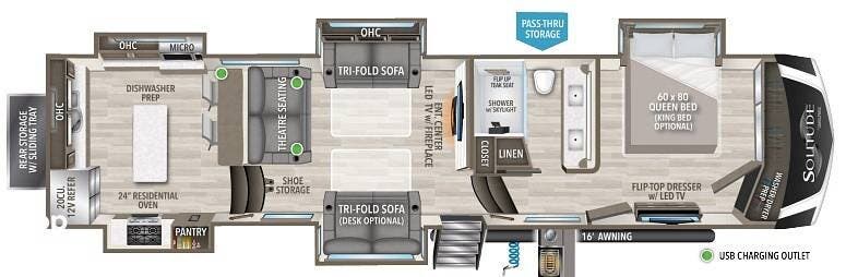 The exterior is also packed with features. A large rear slideout storage tray and pass-thru storage will make packing everything you need very convenient.