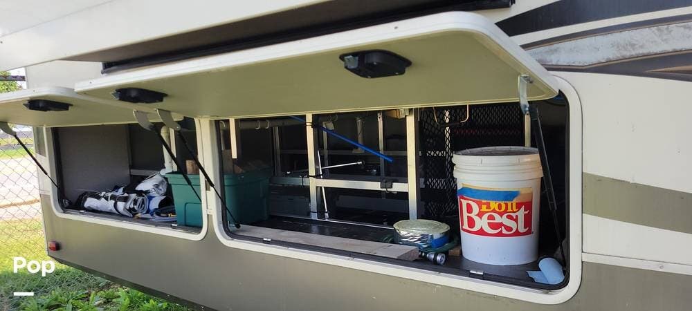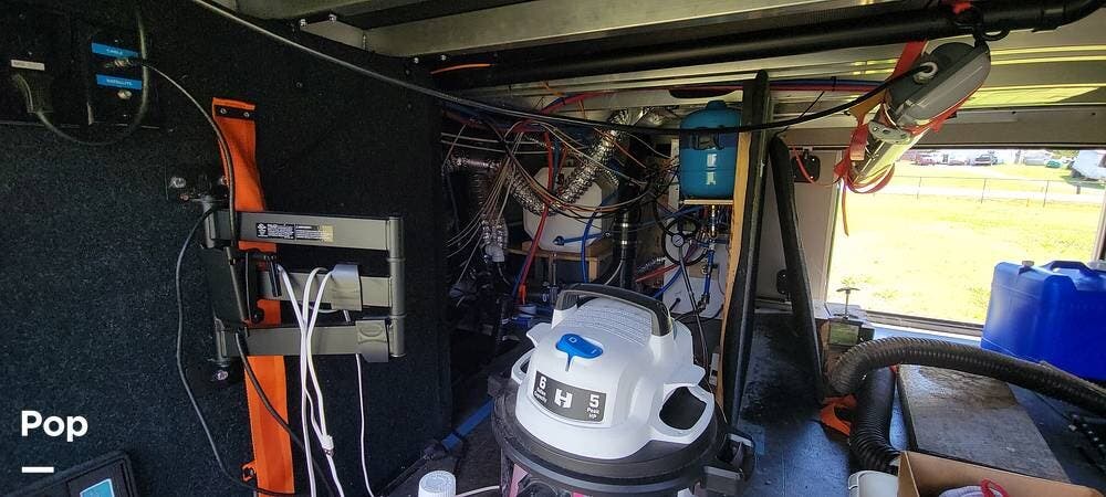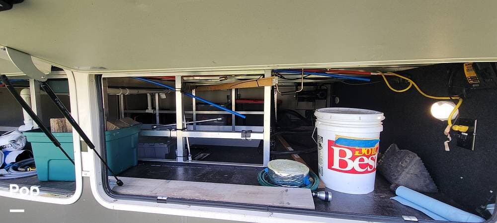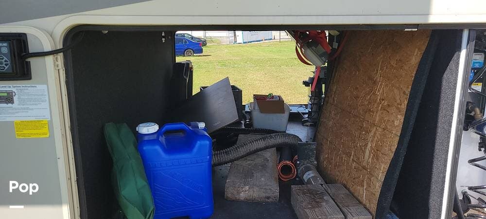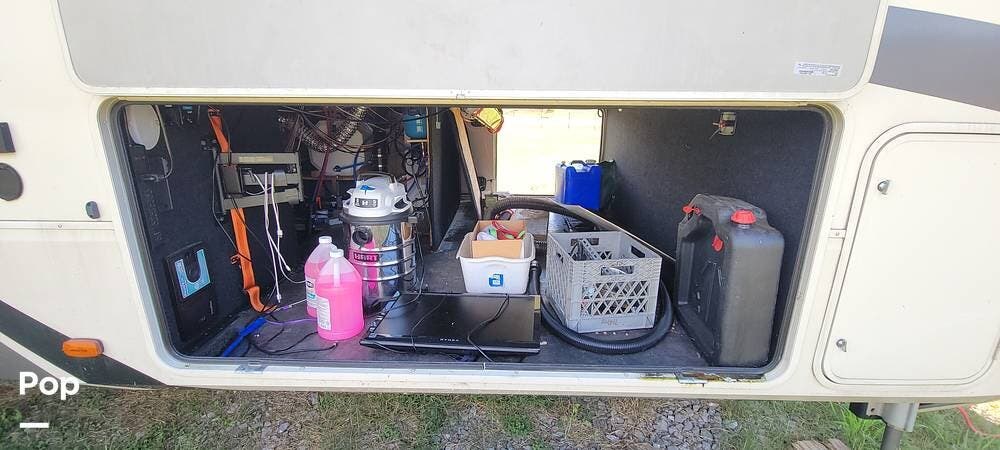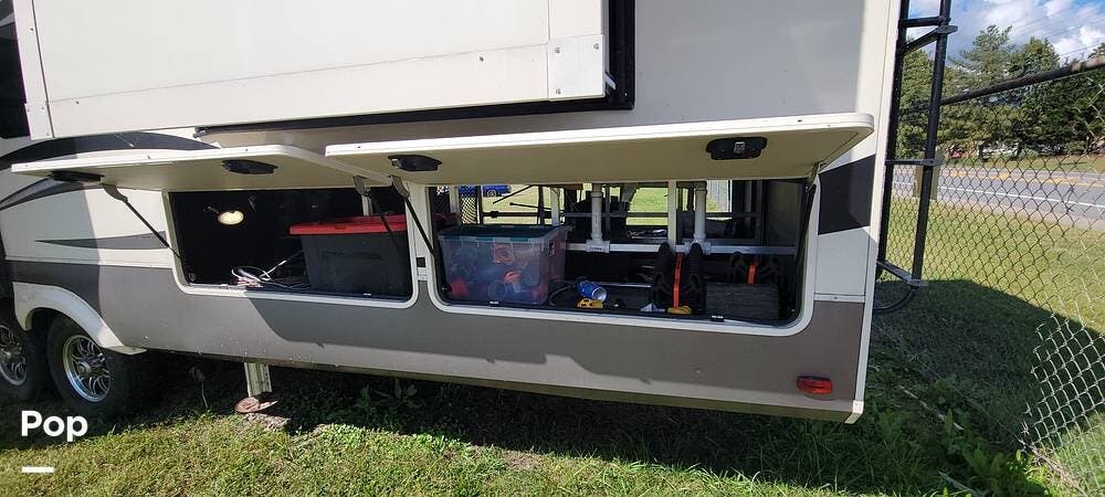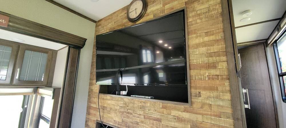 Outside has outstanding storage space, auto-leveling jacks, and another TV that mounts to an articulating stand.