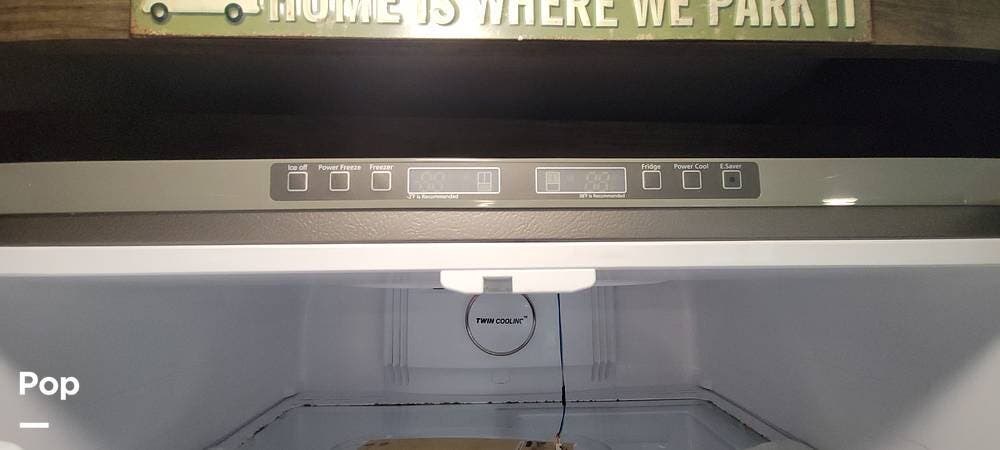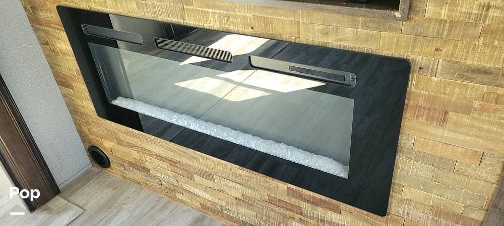 Inside, there is a lot of room in the living area, thanks to two slides. Plenty of room to relax while watching a little TV or relaxing in front of the electric fireplace.