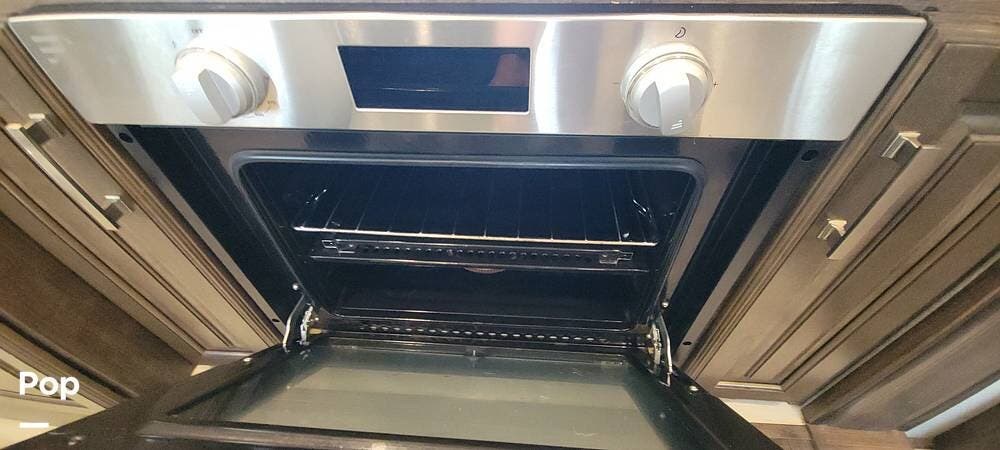 The elevated rear kitchen also has a lot of room thanks to the kitchen slide. Including the center island, there's more than enough counter space to lay out a big spread. It has a residential-size fridge, a three-burner stove, a conventional oven, and a microwave.