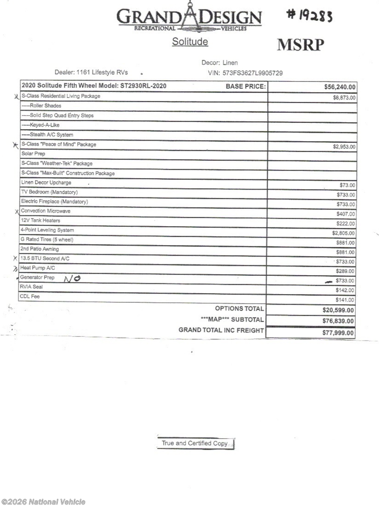 Request More Info on this 2020 Grand Design Solitude S-Class 2930RL Offered for sale by National Vehicle