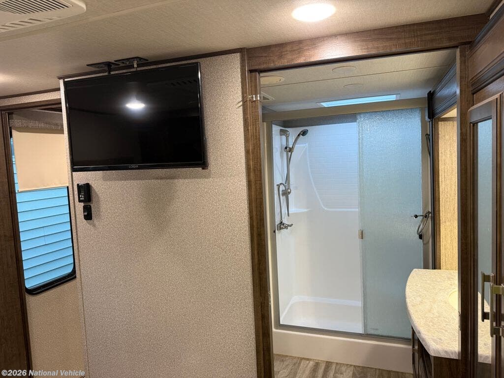 This coach is fully equipped for serious travel and year-round use with the S-Class Winter Package, 12V tank heaters, and Stealth AC system, complemented by a 13,500 BTU second air conditioner to keep the interior comfortable in any climate. Setup is effortless thanks to the 4-point automatic leveling system, while keyed-alike locks and quad entry steps add convenience and security.
