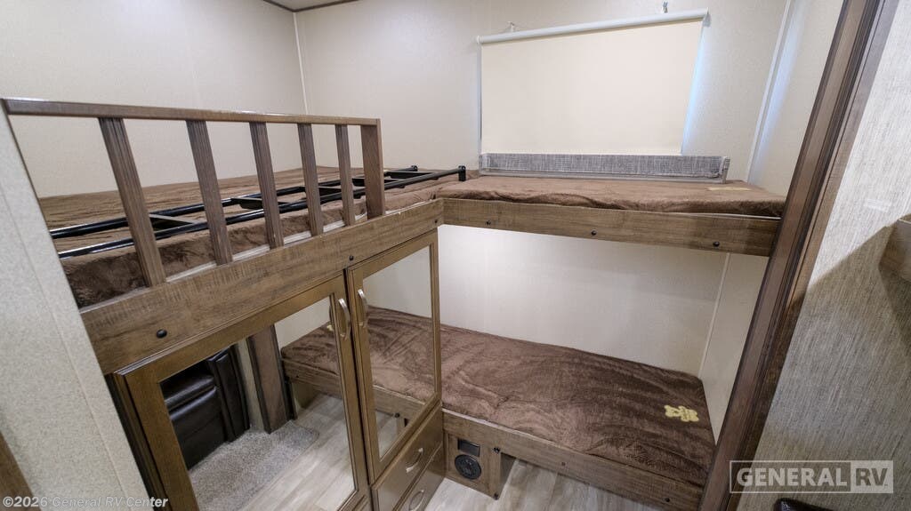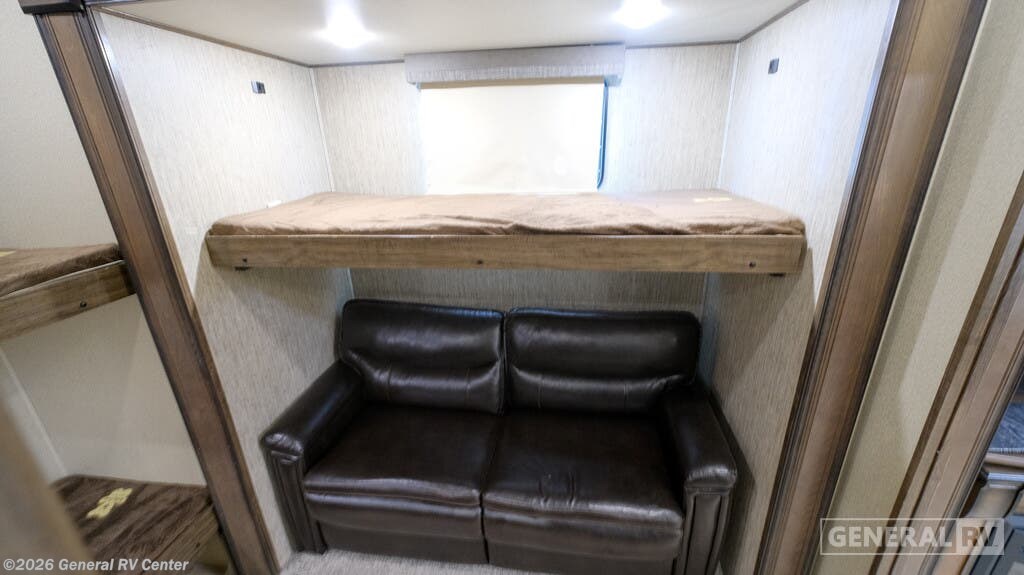 Grand Design Solitude S-Class fifth wheel 3740BH highlights: Private Bunkhouse Quad Bunks Bath and a Half Kitchen Island Dual Entry/Exit Outdoor Kitchen SolidStep Quad Entry Steps Your search is over! Your kids are going to love having their own bunkhouse with a half bath including the second entry/exit into the fifth wheel. That door will surely be opened and closed all day from all the fun outside and inside. The kiddos will enjoy having their privacy, the tri-fold sofa on rainy days, and having their friends stay the night thanks to all the sleeping space in this one room. The main living and kitchen area will impress anyone, and the kitchen appliances allow you to make a thanksgiving meal. You will surely appreciate all the USB charging outlets, the fireplace, the shock assist SolidStep quad entry steps, and the two awnings. Each Grand Design Solitude S-Class fifth wheel offers many residential features at an affordable price for full-timers, extended stay travelers, or weekend warriors. Made to a higher standard, the foundation is built on a drop down chassis, is 8'5" wide with a walk-on roof, includes a MORryde pin box and CRE3000 suspension system, a 4-point or 6-point electric leveling system for quick set up, and has been prepped for solar. Inside you will enjoy taller ceilings, taller and deeper cabinets, the power reclining theatre seating with swivel tables including LED lighting, plus a heat and massage function, a Stealth AC system, and the Weather-Tek package which allows you to travel any season. Choose your favorite model today!