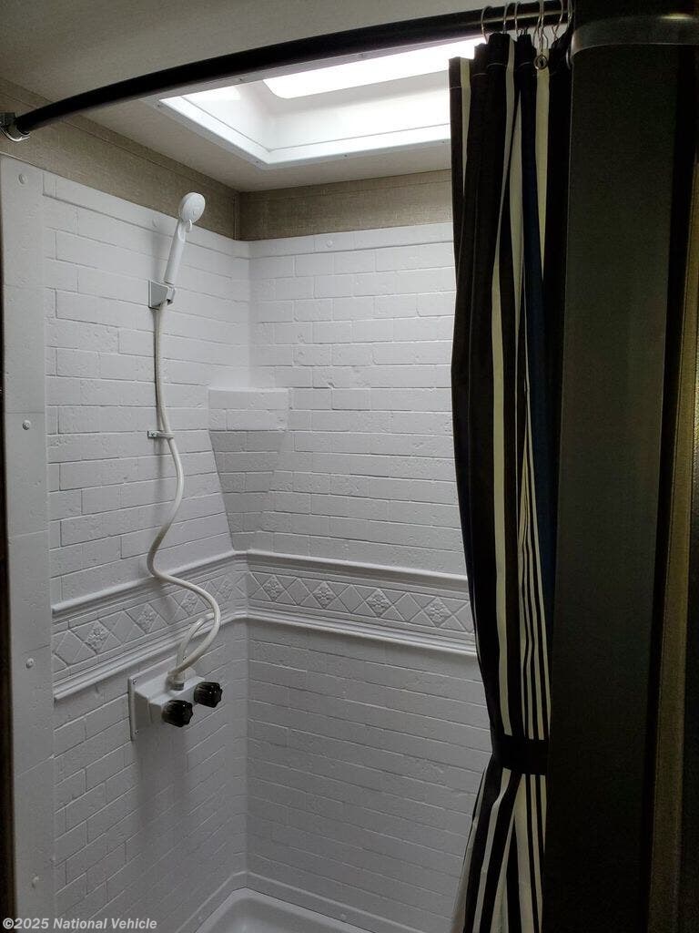 Large pass-through storage (43 cu. ft.) Multiple additional exterior compartments Electric awning Exterior shower Stabilizing system Two butane tanks Clean, well-maintained exterior