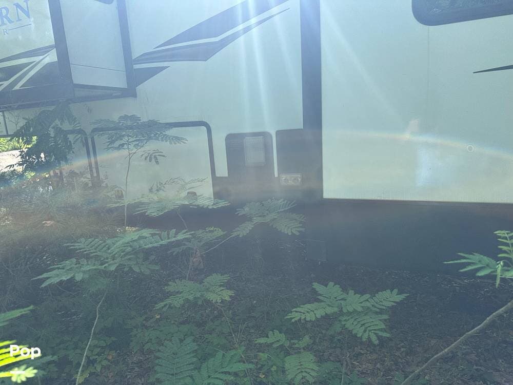 Outside, you have tons of front pass-through storage and a large power awning to keep you in the shade on hot days.