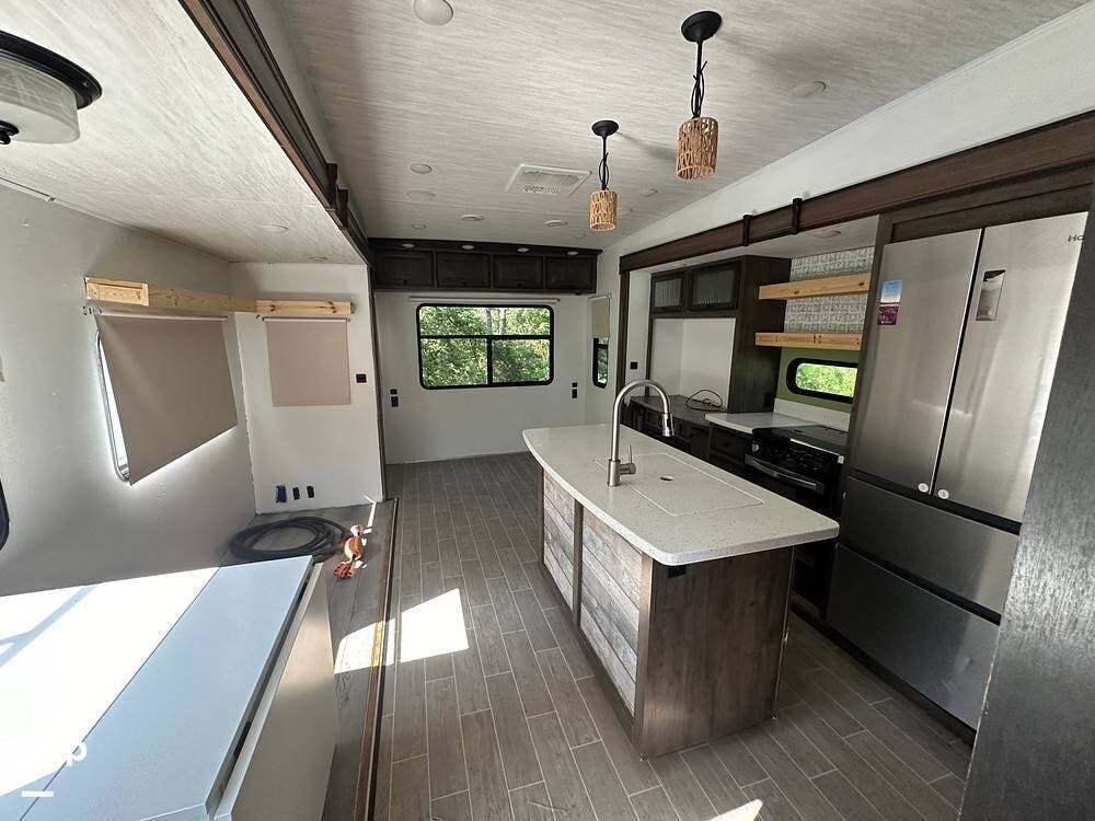 Very spacious fifth wheel that includes washer/dryer, bunk beds, king bed, Residential size fridge with two freezer drawers, and much more! Must see!
