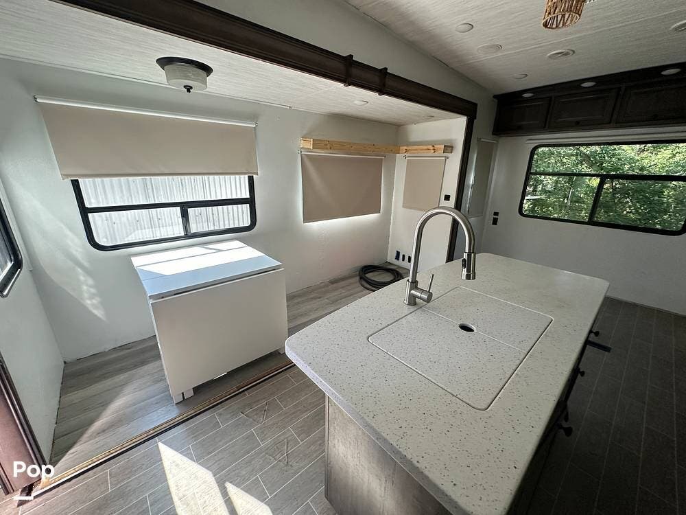 There are lots of sleeping options, including the bunkroom with bunk beds, the overhead loft, and the master bedroom, which make this a full-time-friendly RV.