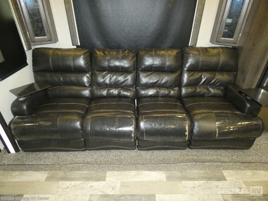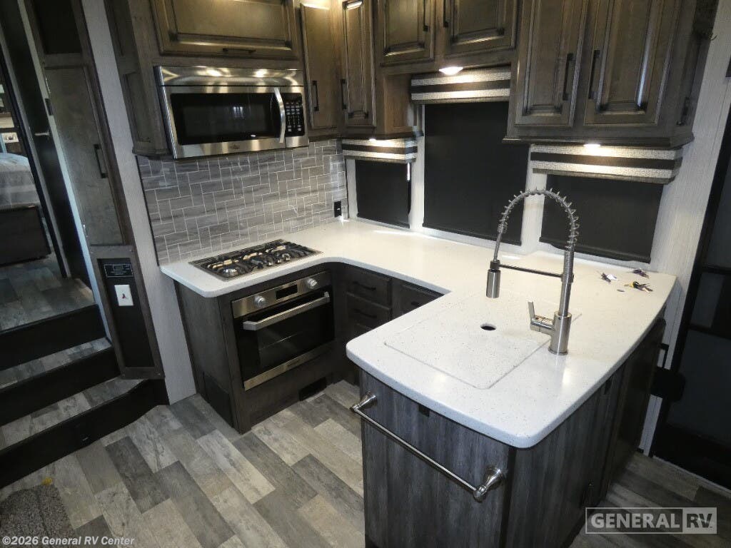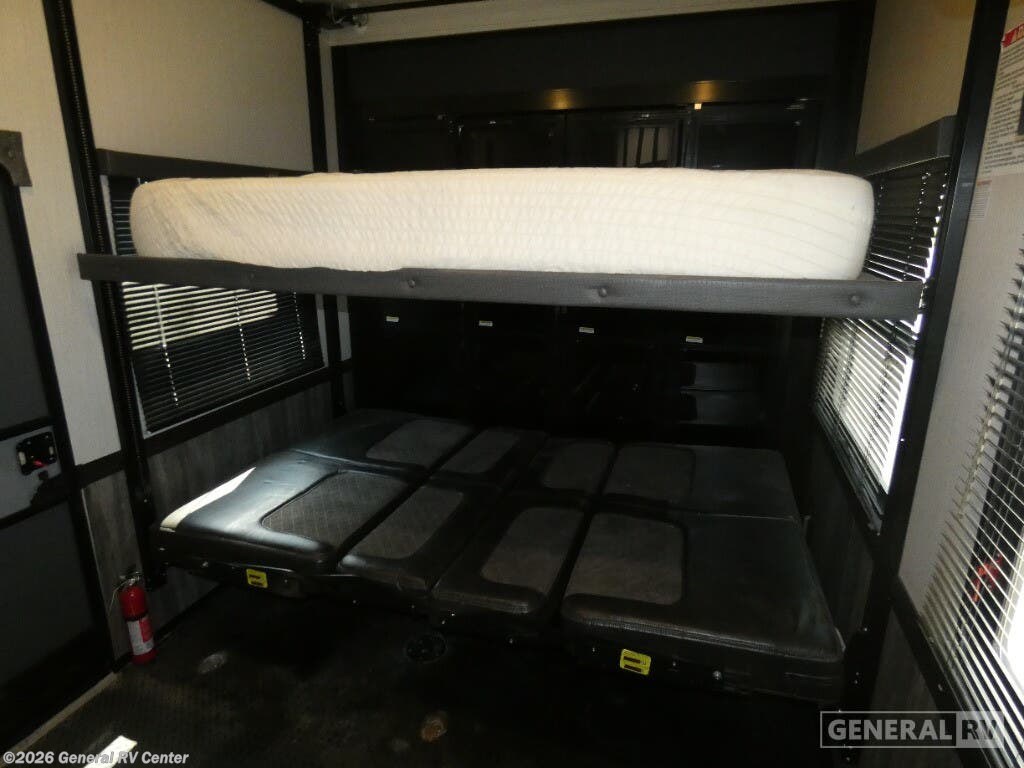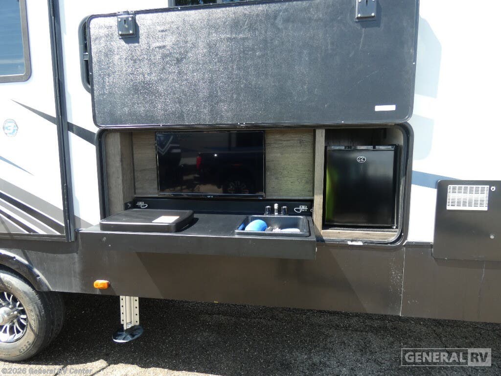 Discover the 2020 Heartland Cyclone CY 4007, a stunning blend of luxury and functionality designed to elevate your RV adventures. This spacious toy hauler offers a remarkable 13-foot garage, perfect for bringing along your favorite outdoor toys. With its ability to sleep up to nine people comfortably, thanks to a king bed, queen bed, and convertible sleeping options, it's perfect for family trips or a getaway with friends. The interior is thoughtfully laid out with a center kitchen and living area, ensuring a seamless flow throughout the space. The kitchen is equipped with a full-size refrigerator and a three-burner cooktop, making meal preparation a breeze. The Cyclone CY 4007 doesn't just excel indoors; it extends its charm outdoors with a 19-foot powered retractable awning and a convenient outside kitchen, perfect for those warm, sunny days. The front bedroom offers a cozy king bed, complete with a fireplace for those chilly nights. An automatic heater ensures comfort throughout your journey, while the ample water capacities mean longer stays without the need for frequent refills. With a robust GVWR of 20,000 lbs and a cargo capacity of over 3,300 lbs, this RV is ready for any adventure you throw its way. To explore this remarkable RV further, visit your nearest General RV dealership location.