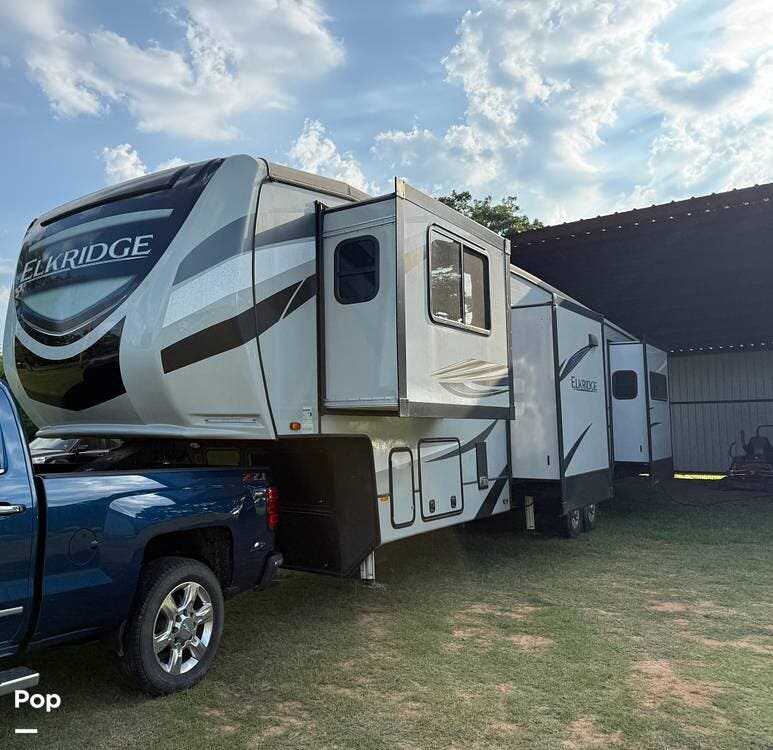 This 2020 Elk Ridge 38FLIK is a 41-foot fifth wheel in Emory, Texas.