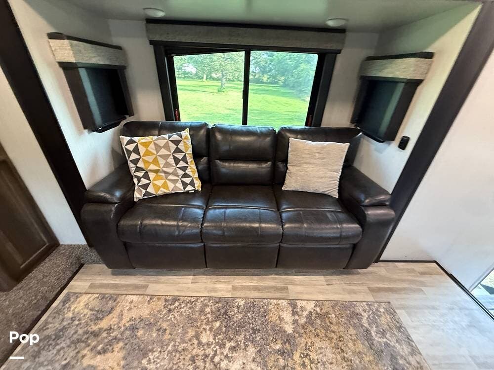 Manufactured by Heartland RV, this front living room design is ideal for full-time living and offers ample space and comfort while traveling.