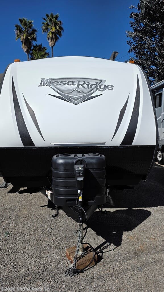 PRIDE OF OWNERSHIP CONDITION - READY TO CAMP AND THEN SOME...CALL FOR INFO 619-582-7878...OPEN MOST WEEKDAYS 9-4 AND AFTER HOURS OR SAT/SUN BY APPOINTMENT----Used but in AS New condition, quality built 2020 Mesa Ridge Lite model 2602RL by Highland Ridge with double door entry, molded front fiberglass cap and slideout. Fully self contained with ducted roof air conditioning, 21' power awning w/led lights, forced air furnace, electric heat fireplace, 6 gallon gas/eclectic dsi water heater, double door 2-way refrigerator, 3 burner cooktop with oven, microwave 42' flat screen tv and more. Sleeps 6 with front island queen bedroom, sofa and U shaped dinette sleepers. Center private bath with large shower. Super clean inside and out and only used 3 times. This trailer was special ordered from the factory with a 50amp electrical service and is wired for a second roof a/c. As shown in the photos almost anything needed to tow and hookup is included. We're talking weight distribution, 50amp surge protector, backup camera, power hitch, Level Mate Pro and 100's of $$ more in extras. This one is truly ready to hit the road...non smoker, no pets and no leaks . As always we include a thorough walk through orientation. Priced to sell at only $21,950.00 Vin#MH3065. For more information or viewing call Hit The Road RV at 619-582-RVRV(7878). Price does not include $85 doc fee, sales tax of your CA zip code or DMV registration/transfer fees.