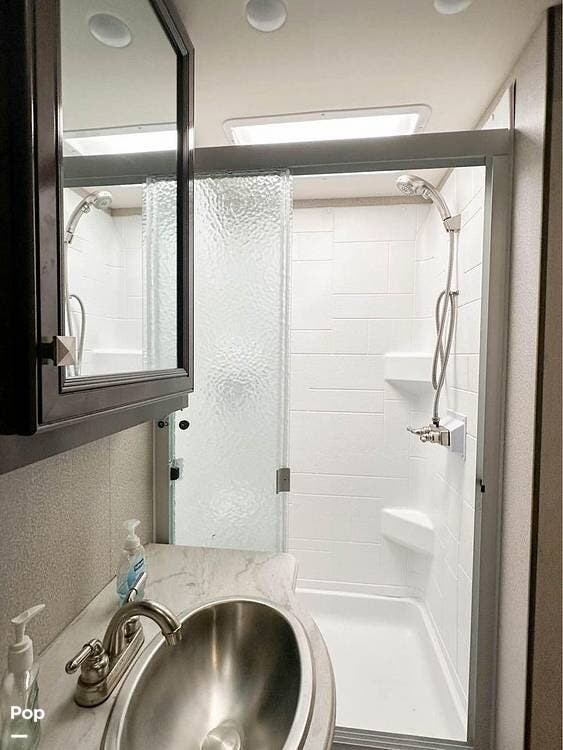 The transmission is a TorqueShift 6-speed automatic with overdrive. The tires are good, and this unit is ready to roll and fully functional. Next to the master bedroom, there is a full bath with a huge, spotless shower.