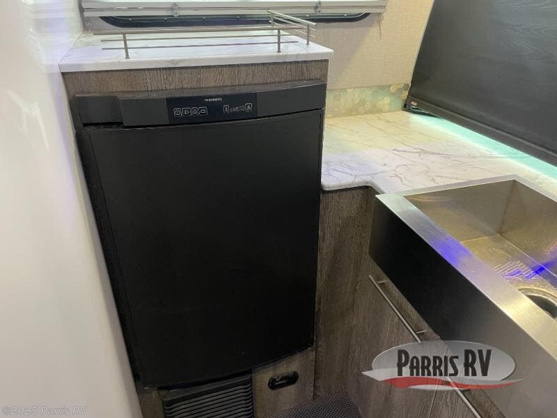 Make every trip an adventure with this Sol travel trailer! The U-shaped dinette is very functional because it can be used for both dining and sleeping. You will also find the front kitchen to be extremely helpful with its large farmhouse-style sink, two-burner stainless steel cooktop, and stainless steel microwave. Spend your mornings getting refreshed in the wet bath before heading outside for a day full of fun, and when you get back from your nature hike, you can grab a cool bottle of water from the 3.7 cubic foot refrigerator.