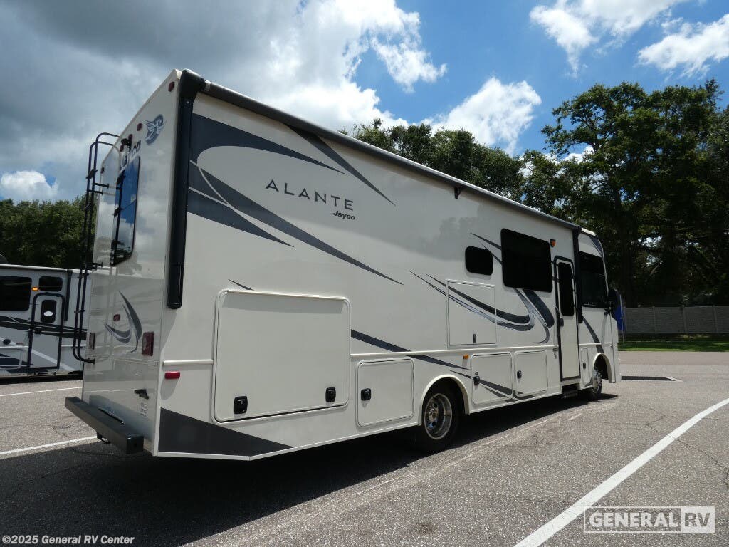 Jayco Alante Class A gas motorhome 29S highlights: Full-Wall Slide 39' Swivel TV Pantry Outside Kitchen Outside Entertainment 23' Electric Awning w/ LED Lights Luxury and comfort awaits you in this Alante Class A gas motorhome. You will appreciate all the floor space provided by the full-wall slide allowing you to move from one end to the other with ease. There are full bathroom amenities as well as inside kitchen appliances to make any meal. The master bedroom allows you to sleep on an RV queen bed and store your clothing in a wardrobe and dresser. You can even slide the door shut for privacy. Now imagine relaxing outdoors around the exterior entertainment center with an LED TV including a DVD/AM/FM radio and speakers. You can also cook on the outside kitchen under the 23' electric awning with LED lights. The Alante Class A gas motorhome comes equipped with a JRide package that includes a computer-balanced driveshaft, jounce bumpers, front and rear stabilizer bars, and SACHS shocks. You will appreciate having the industry's largest travel-view window on the entrance door providing amazing views and extra natural light. Inside, you will find high-intensity recessed LED ceiling lights, ball-bearing drawer guides, and hardwood cabinetry. Plus, the Soundstream Infotainment dash radio with GPS and CD/DVD player will enhance all of your upcoming road trips. Your home on the road is waiting for you, so choose your favorite Alante and get to it!