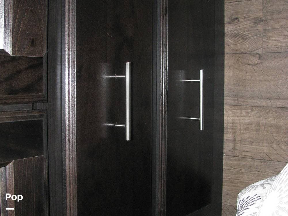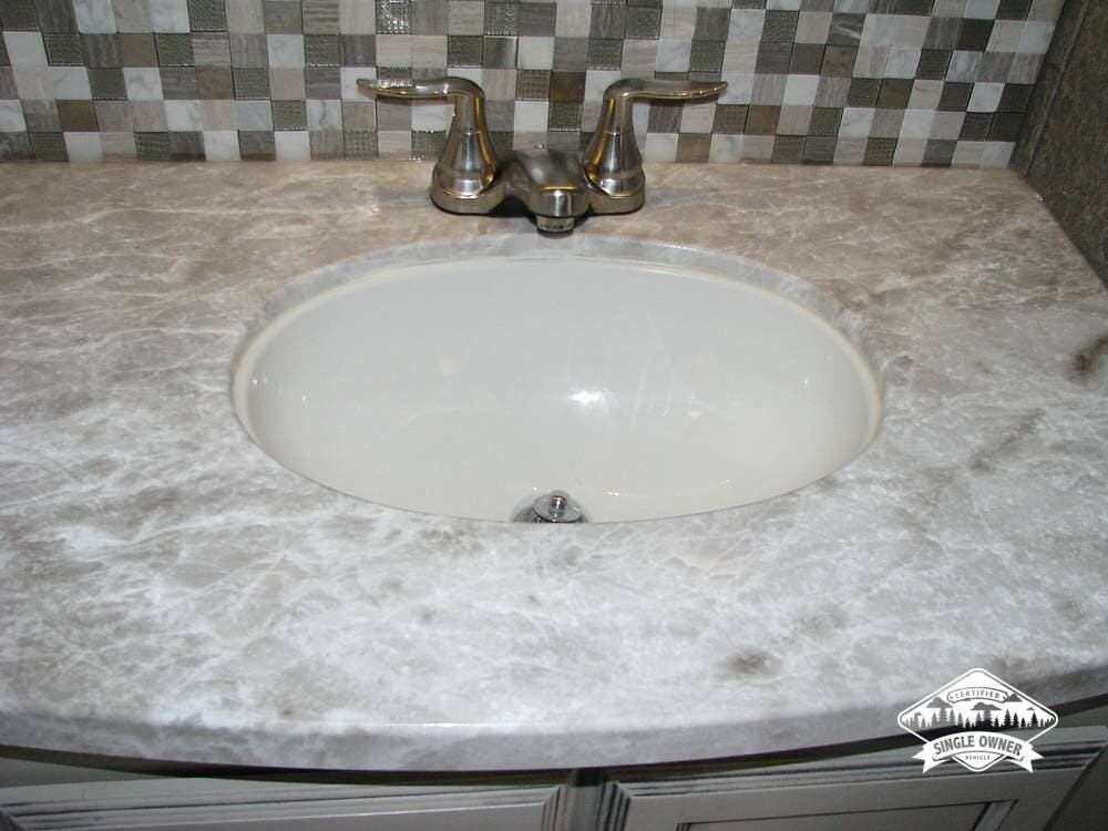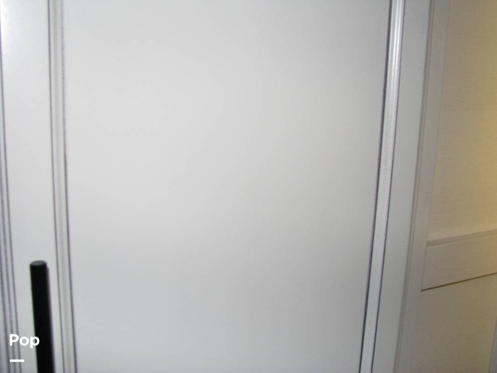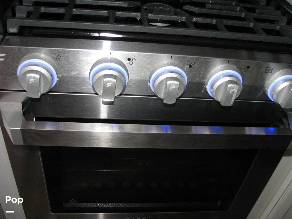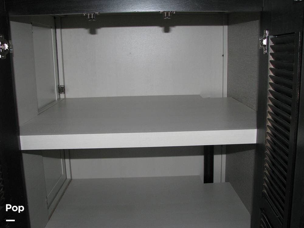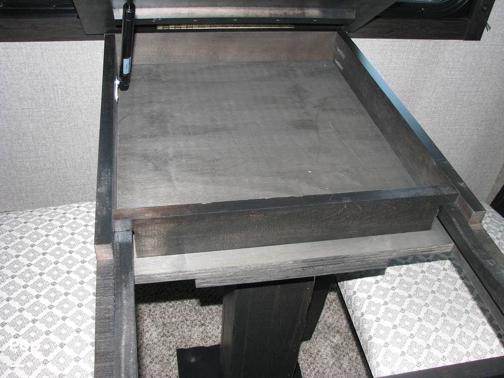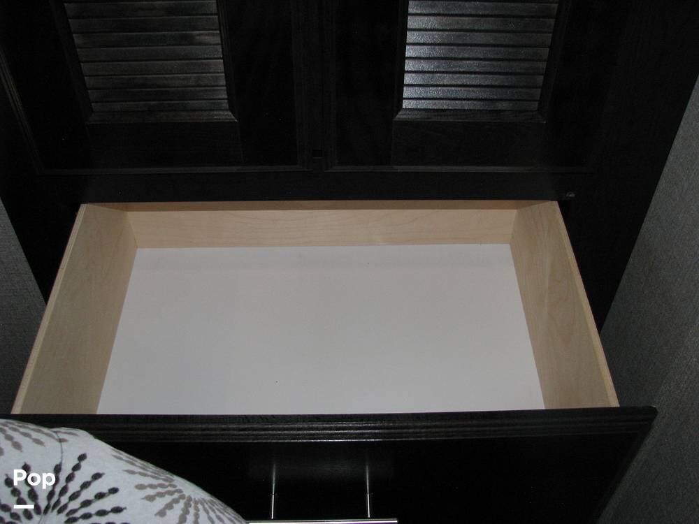 As you enter the unit from the entry door and look to your right, you will find a 60x80 queen-size bed with under-bed storage, overhead cabinets, and pre-wiring for cable or satellite.