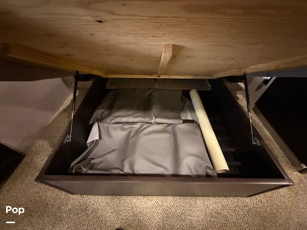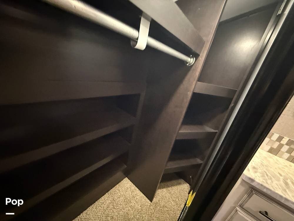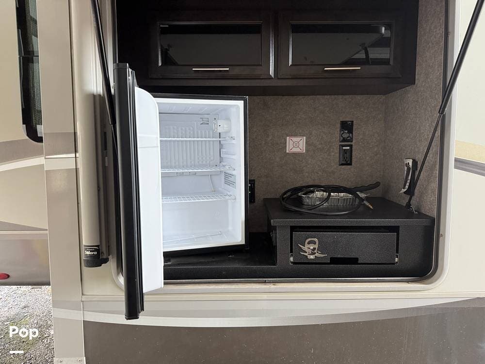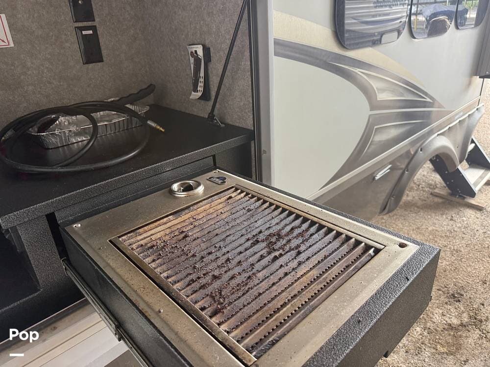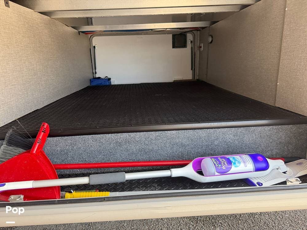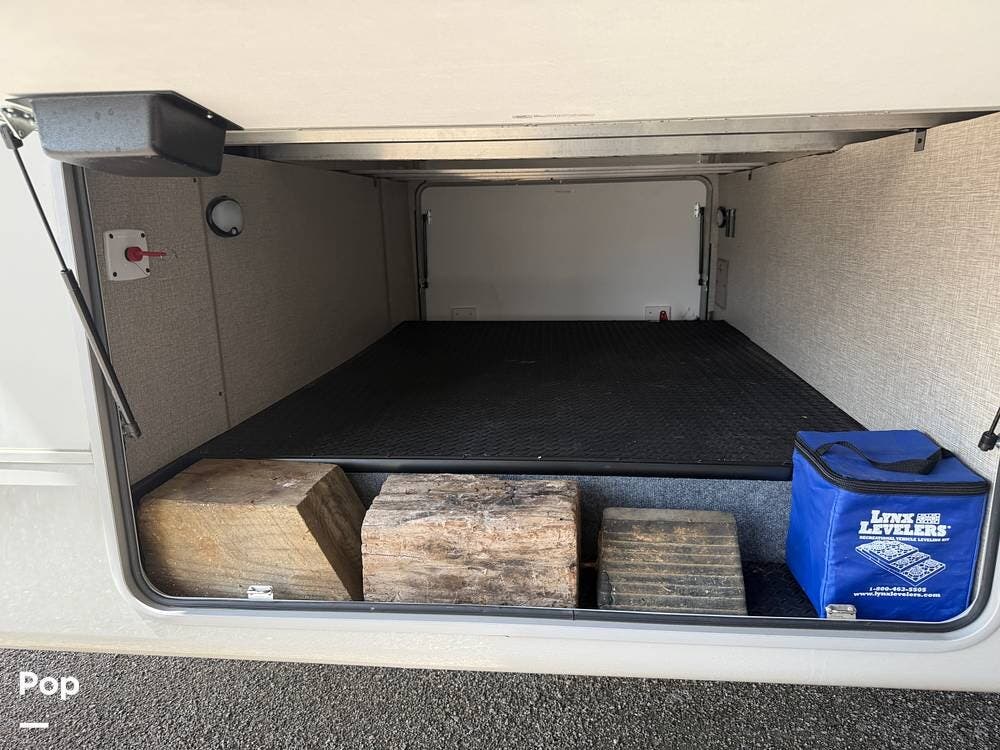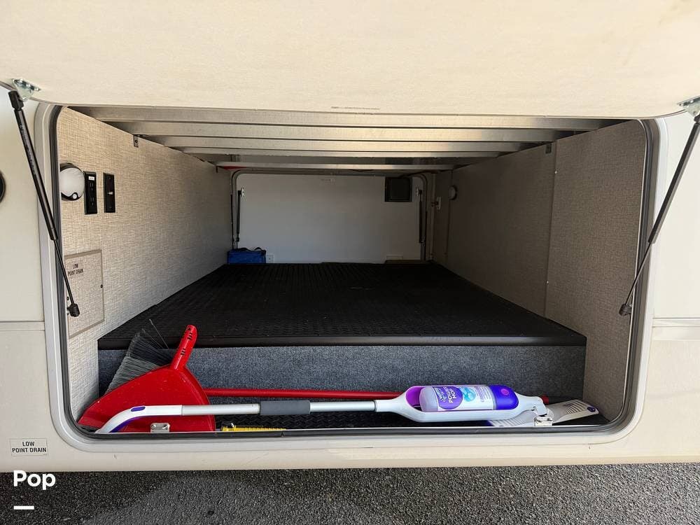 Outside, there is an ample pass-through space that can accommodate a lot of gear, and the large power awning will enable you to make great use of that outdoor kitchen.