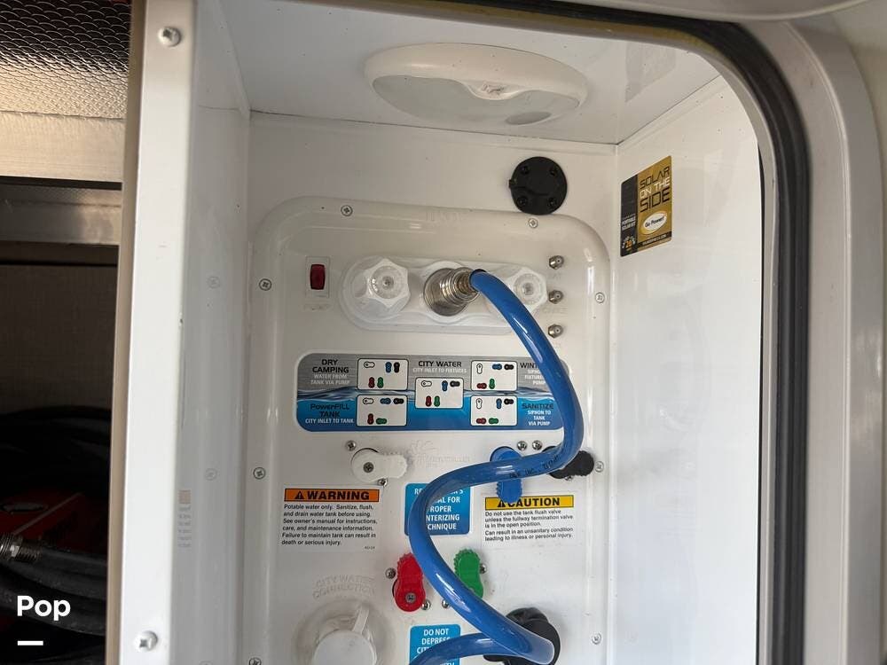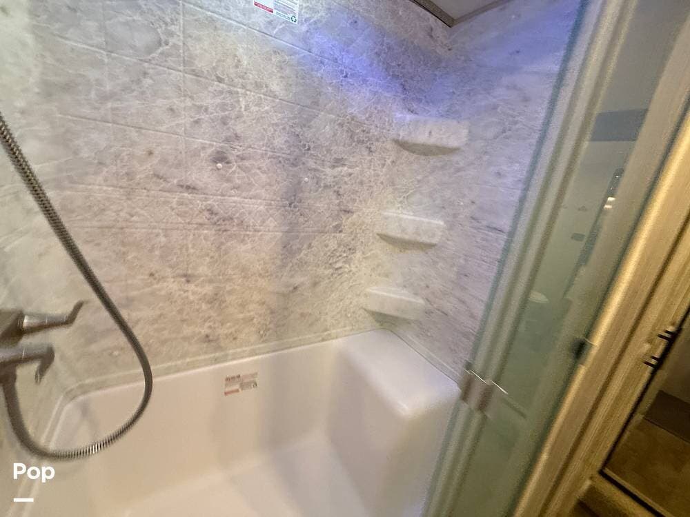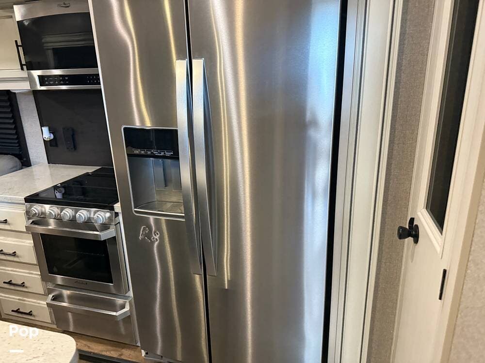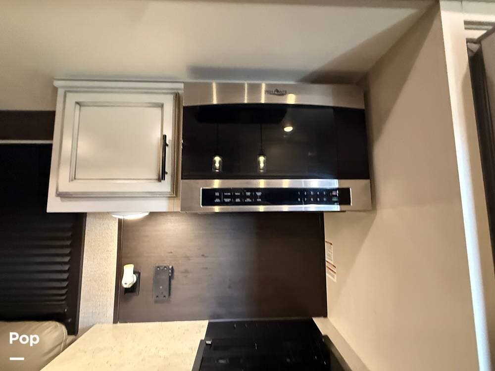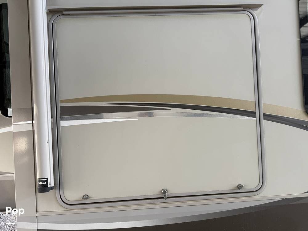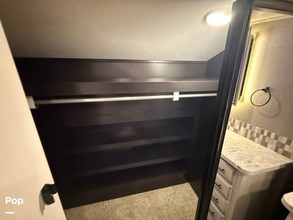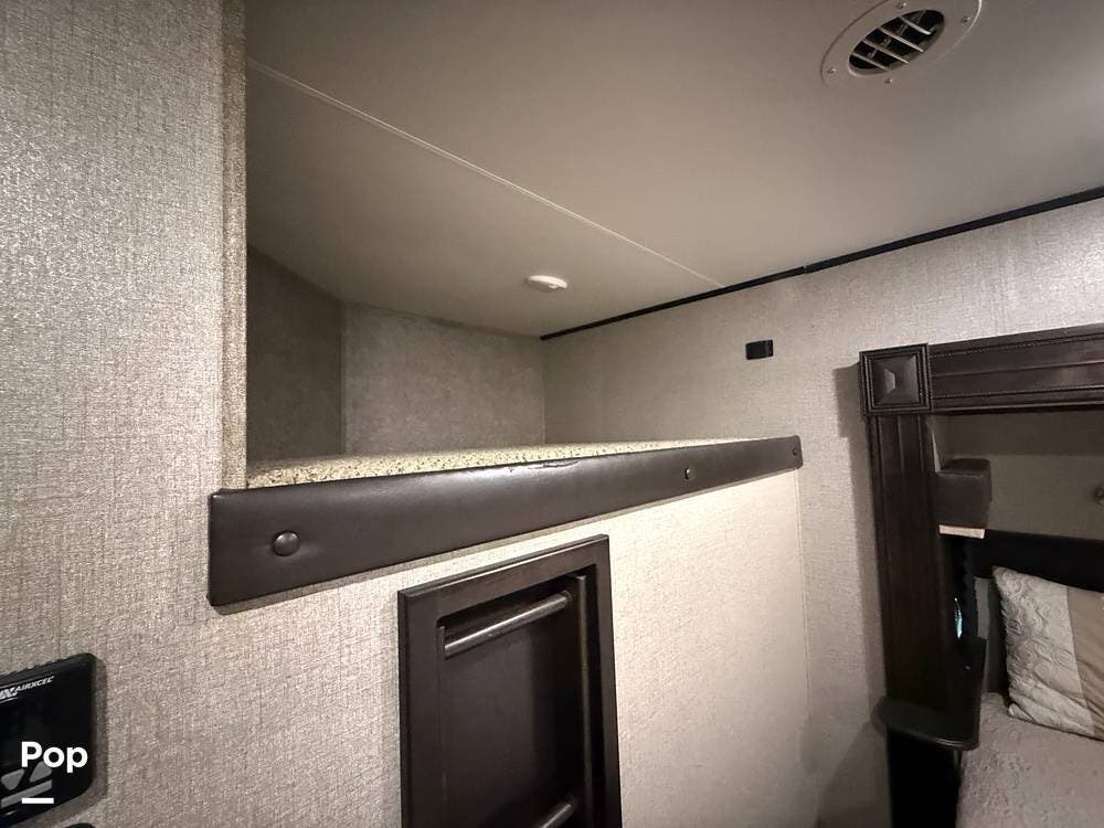 Outside, there is an ample pass-through space that can accommodate a lot of gear, and the large power awning will enable you to make great use of that outdoor kitchen.