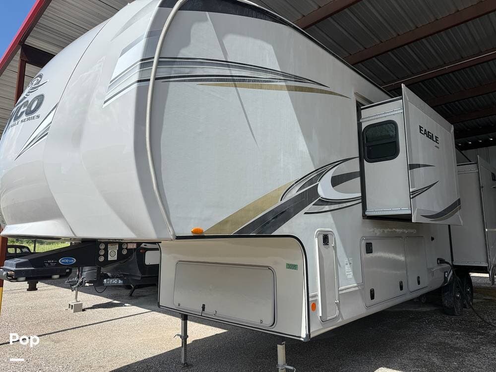 This 2020 Eagle 336FBOK is a 39' fifth wheel located in Royse City, Texas.