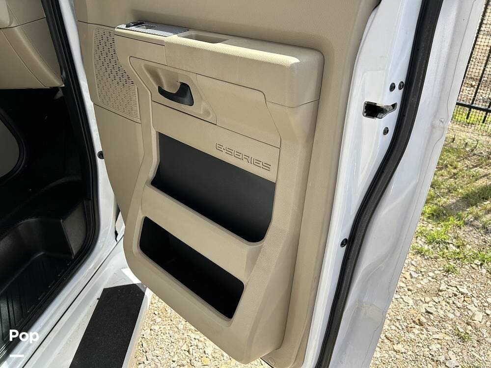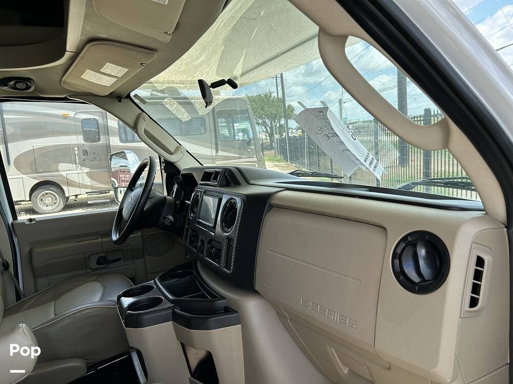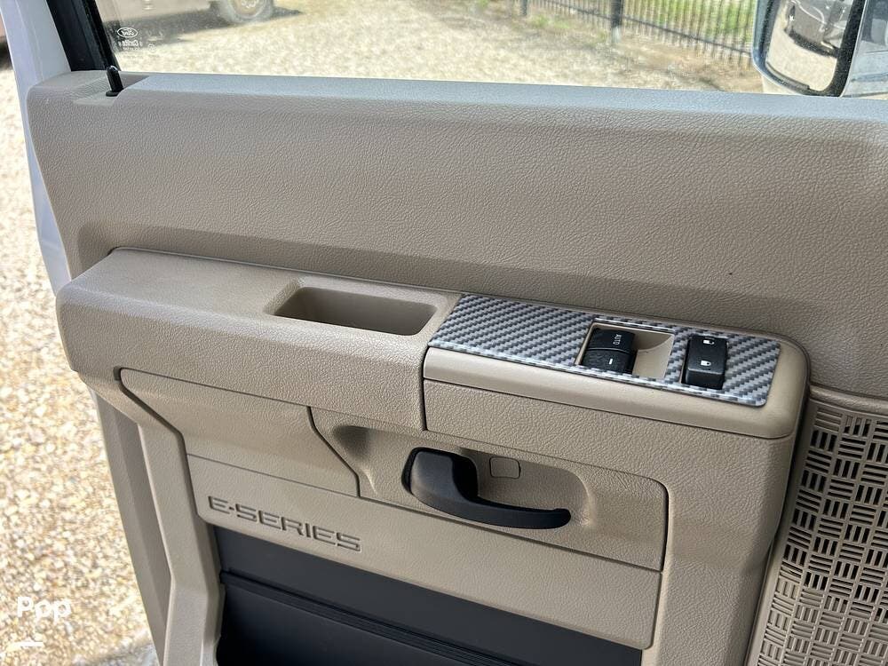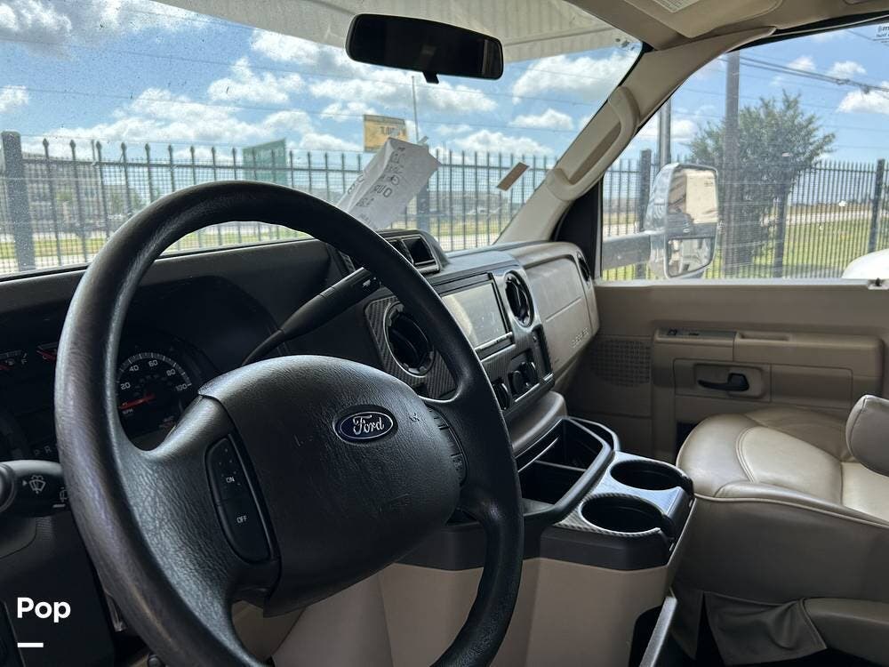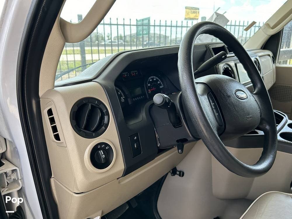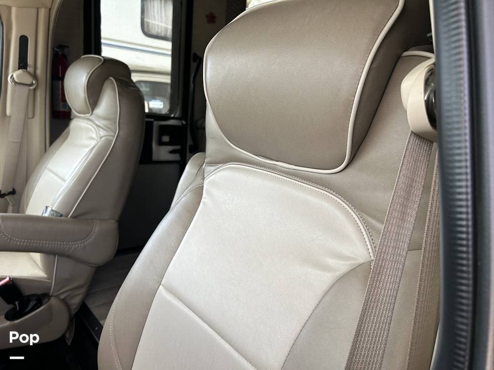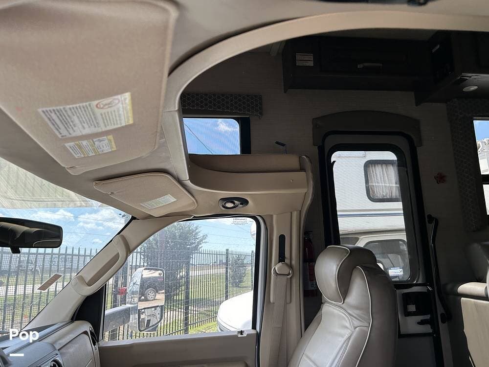 The cab area is very comfortable. It has a dash with all quality controls and bucket seats that swivel to the rear when parked for more seating in the living area.